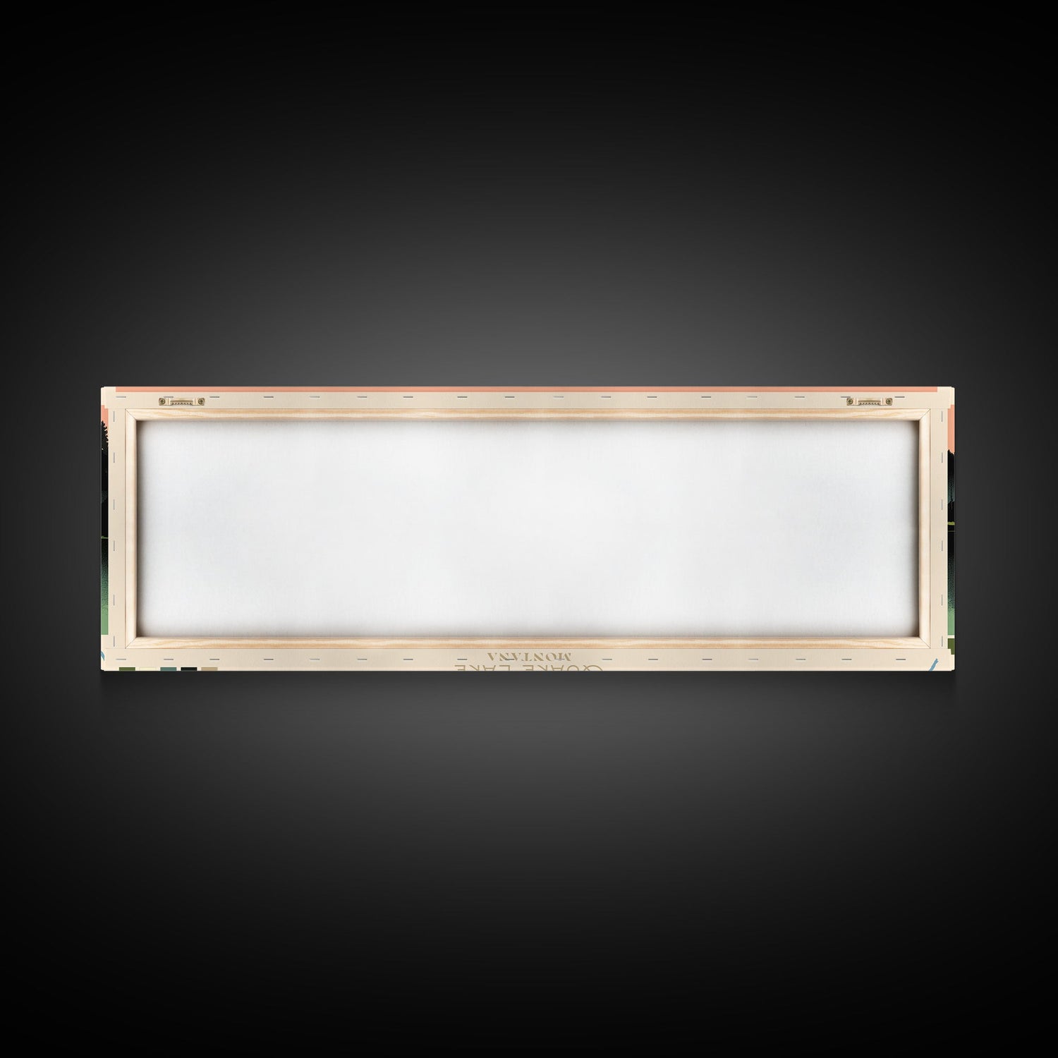 Quake Lake, Montana Framed Canvas Print, Home Decor, Midcentury Modern, Panoramic Wall Art, Pop Art, Travel Poster - 10x30 Inches / No Frame - Stretched Canvas Only is backordered and will ship as soon as it is back in stock.