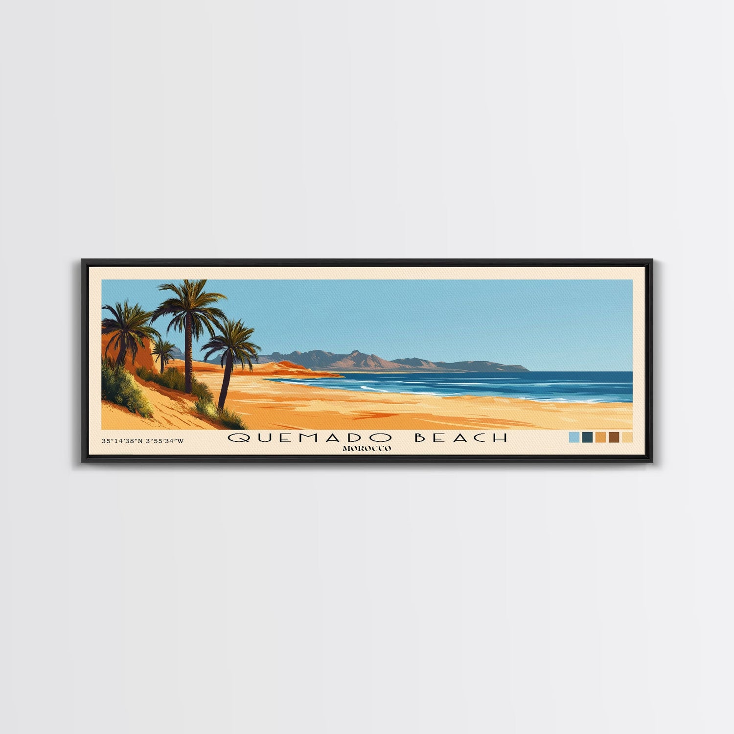 Quemado Beach, Morocco Panoramic Print, Vacation Gift, Morocco Wall Art, Beach Painting, Beach Decor, Large Wall Art, Wood Frame Art