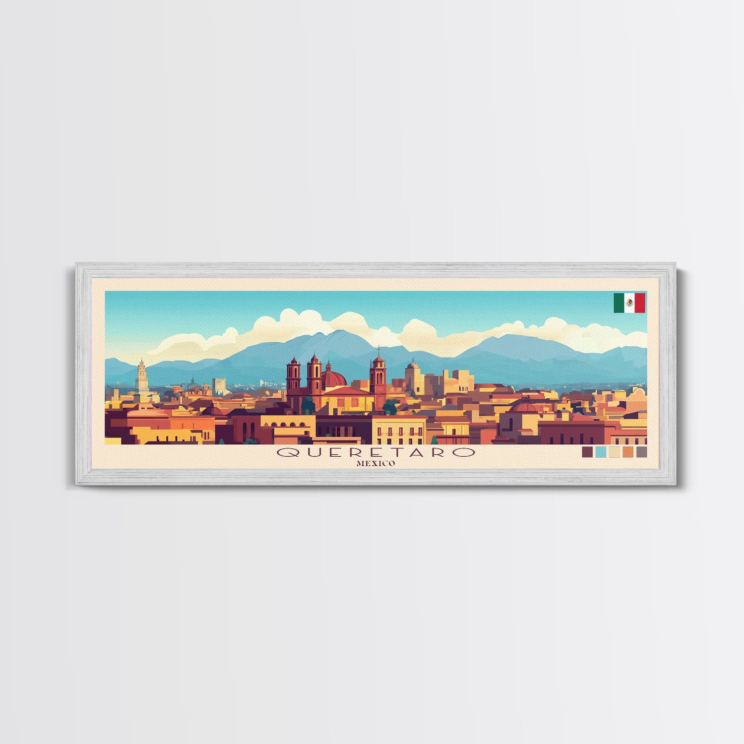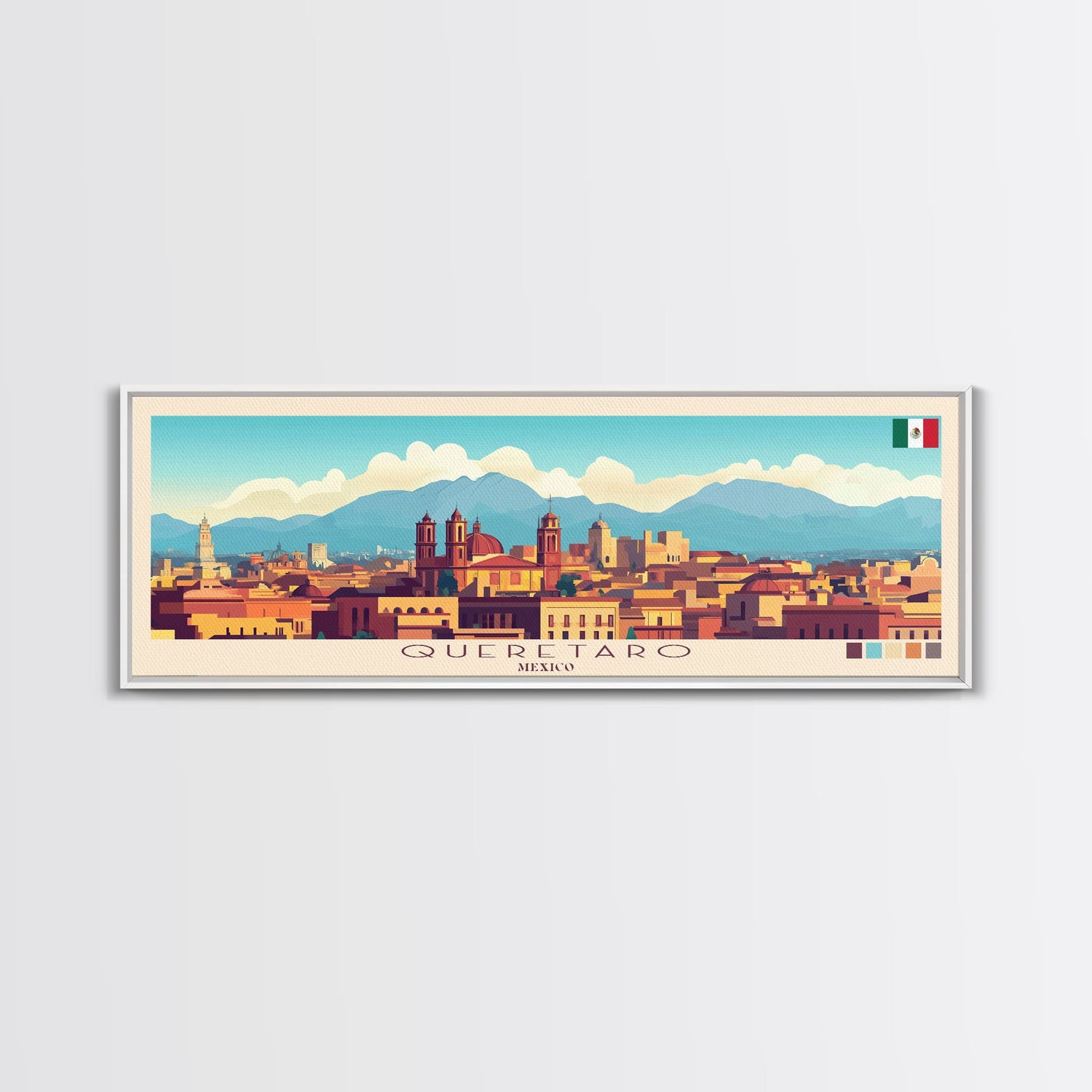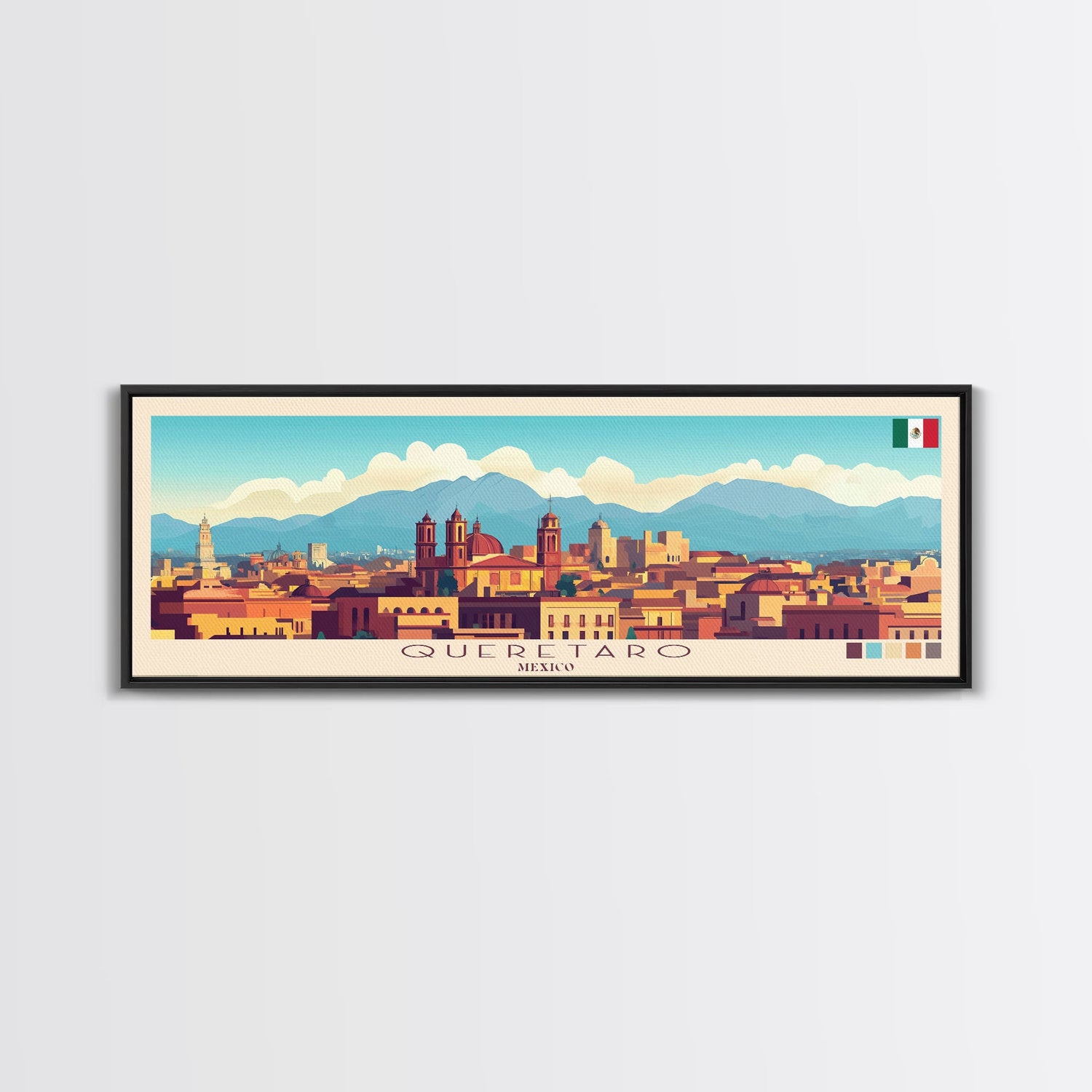 Queretaro, Mexico Panoramic Travel Poster Canvas Print, Queretaro, Mexico Painting, Mexico Art, Queretaro Travel Art, Living Room Painting