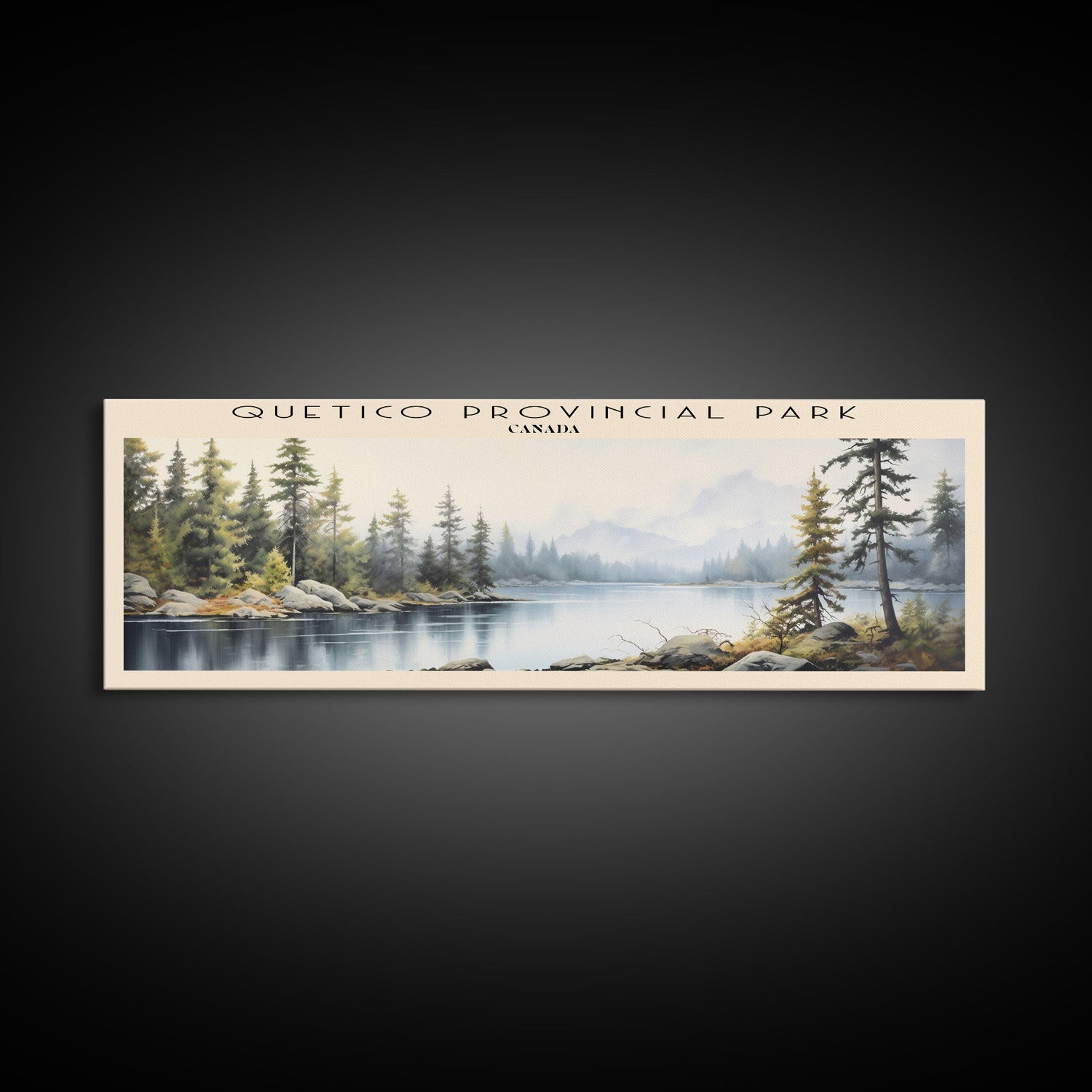 Quetico Provincial Park COUNTRY | Framed Travel Poster Canvas Print | Trendy Wall Art | Watercolor Painting | Living Room Art | Unique Art - 10x30 Inches / No Frame - Stretched Canvas Only is backordered and will ship as soon as it is back in stock.
