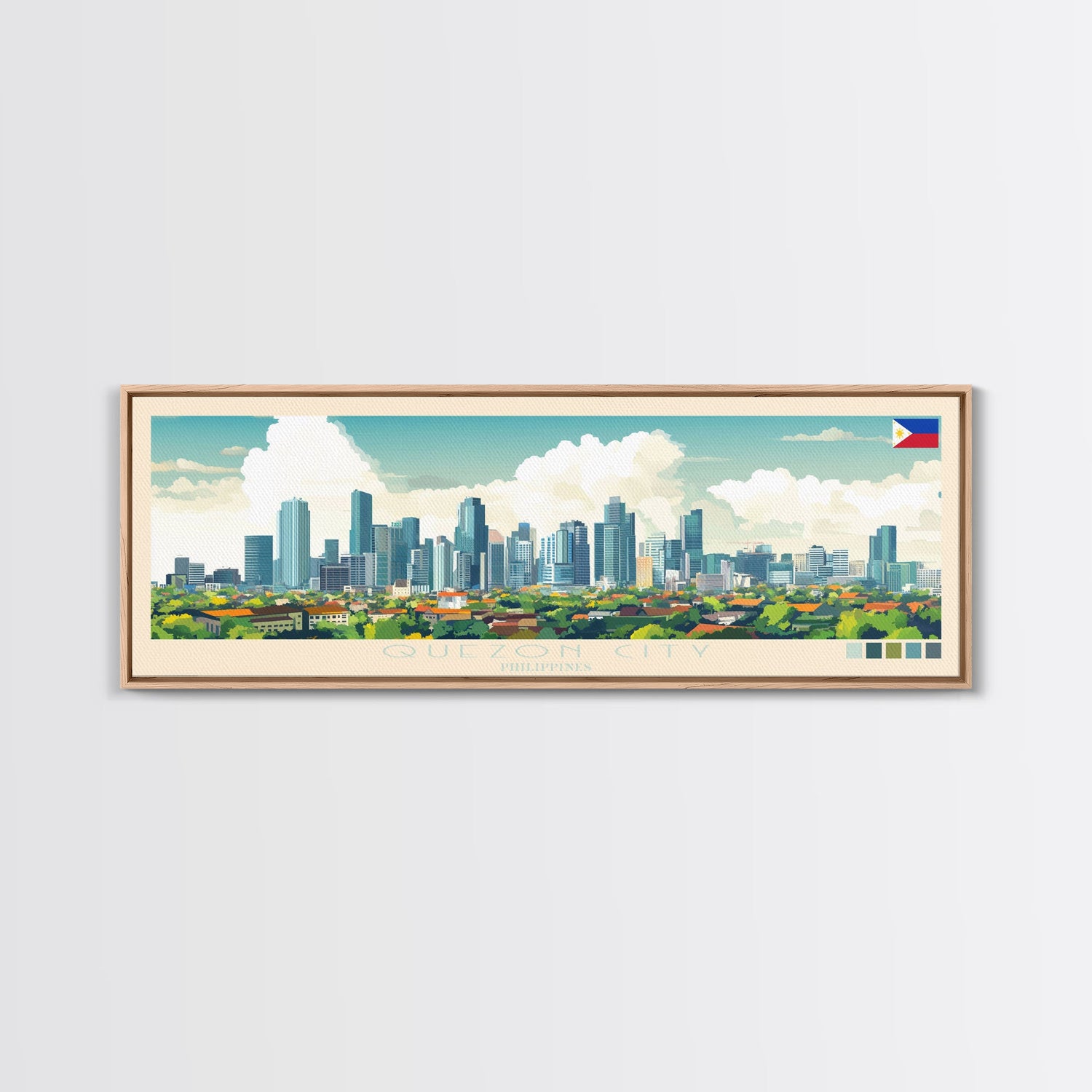 Quezon City, Philippines Travel Poster Panoramic Canvas Print, Quezon City, Philippines Painting, Philippines Art, Quezon City Travel Art, Guest Room Painting