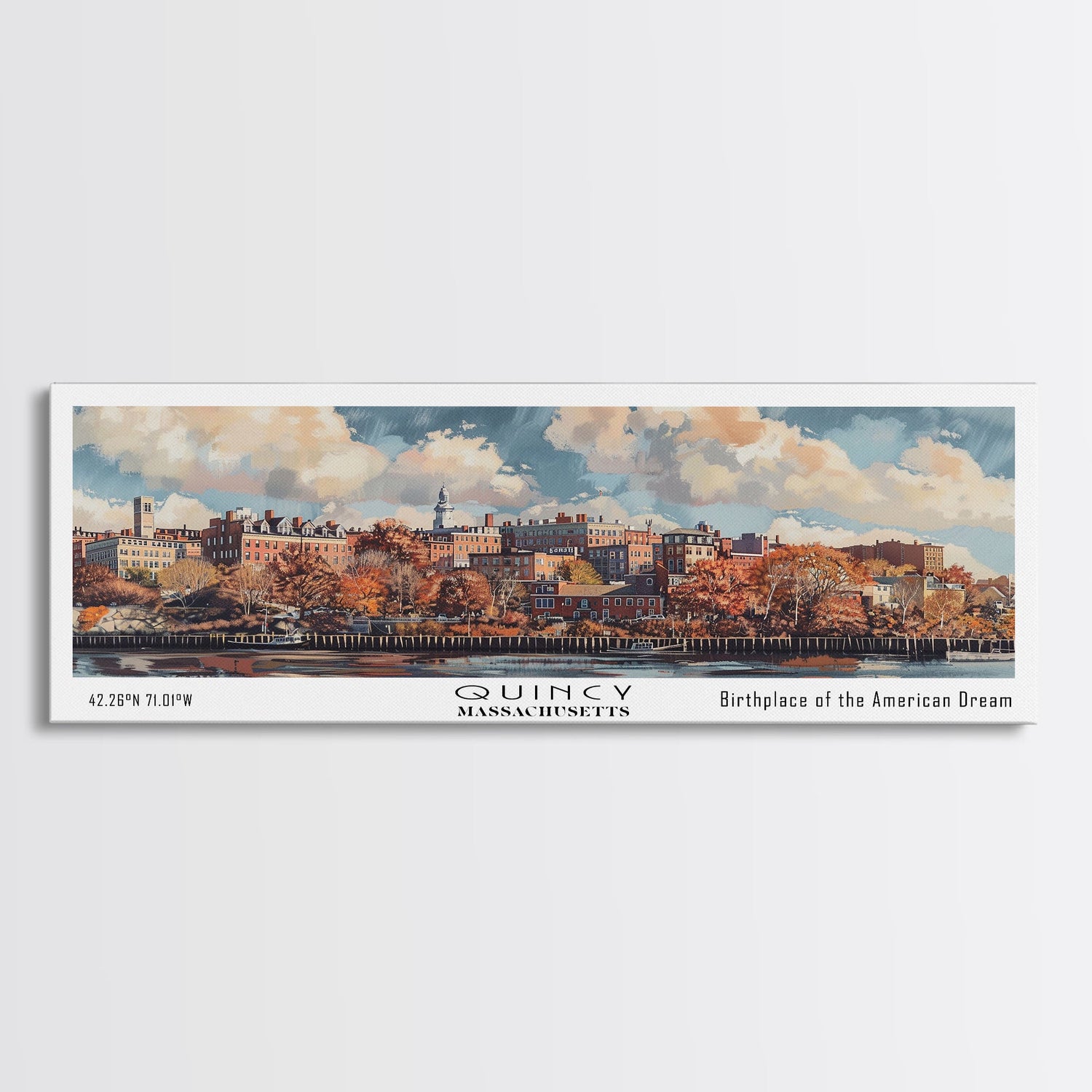 Quincy Massachusetts Panoramic Print, Creative Framed Canvas Print, City Travel Poster, Wall Art, Home Decor, Unique Gift