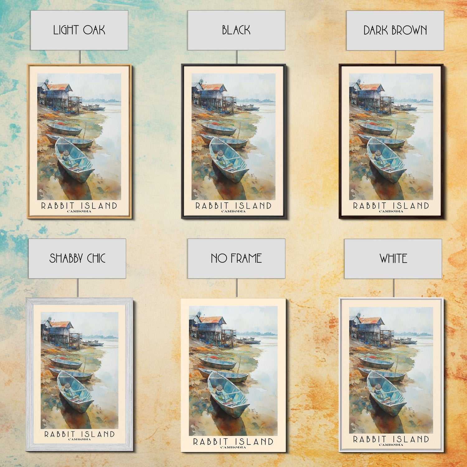 Rabbit Island, Cambodia Watercolor Beach Print, Vacation Gift, Cambodia Wall Art, Framed Canvas Print, Framed Beach Painting - 8x12 Inches / No Frame - Stretched Canvas Only is backordered and will ship as soon as it is back in stock.
