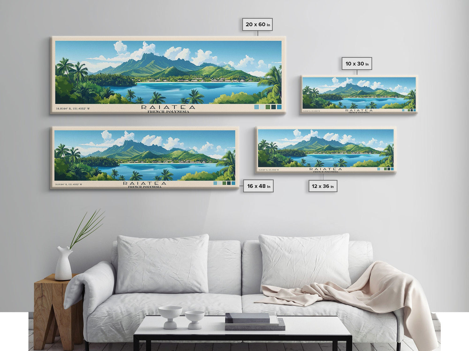 Raiatea, French Polynesia Panoramic Beach Print, Vacation Gift, French Polynesia Wall Art, Beach Painting, Beach Decor, Beach Painting - 10x30 Inches / No Frame - Stretched Canvas Only is backordered and will ship as soon as it is back in stock.