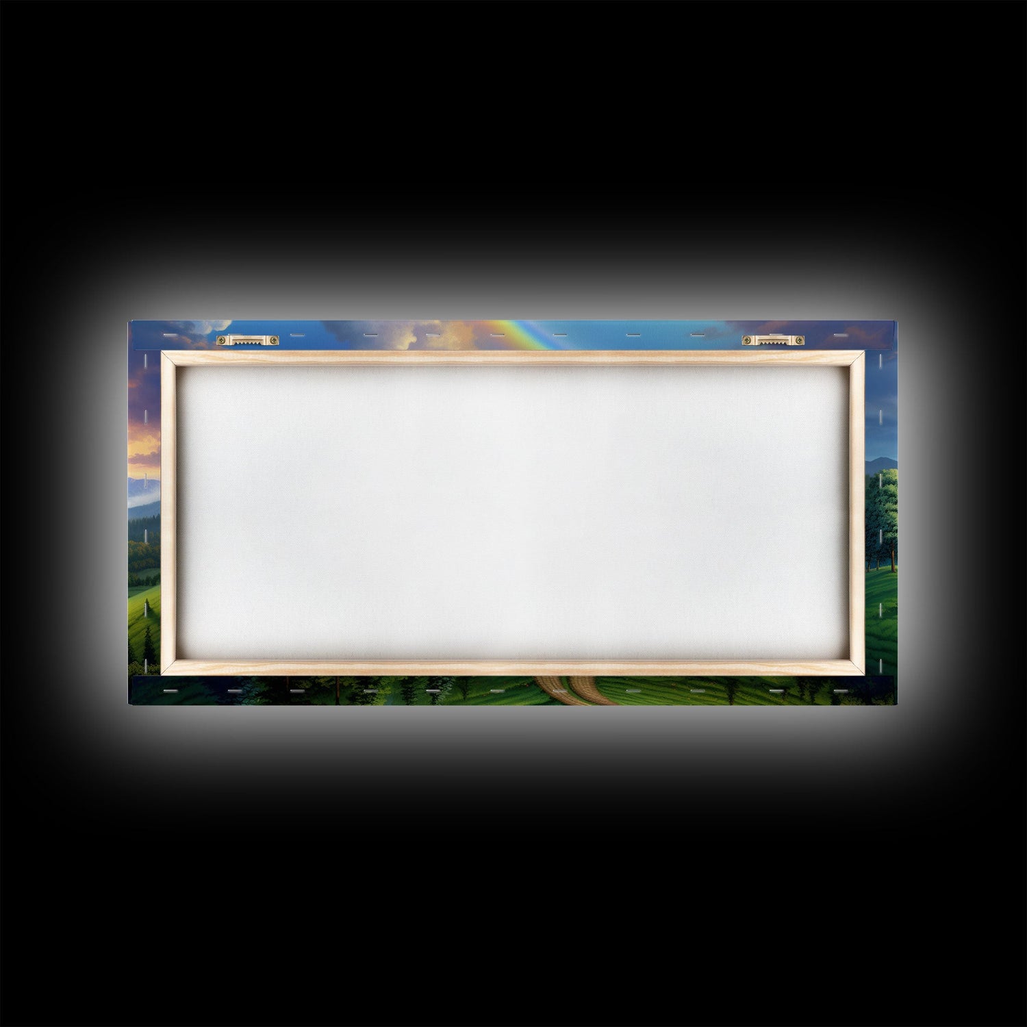 Rainbow Wall Decor, Fantasy Art, Mountains Wall Art, Panoramic Art, Wall Art, Canvas Art, Landscape Art, Appreciation Gift, College Dorm Art - 10x20 Inches / No Frame - Stretched Canvas Only is backordered and will ship as soon as it is back in stock.