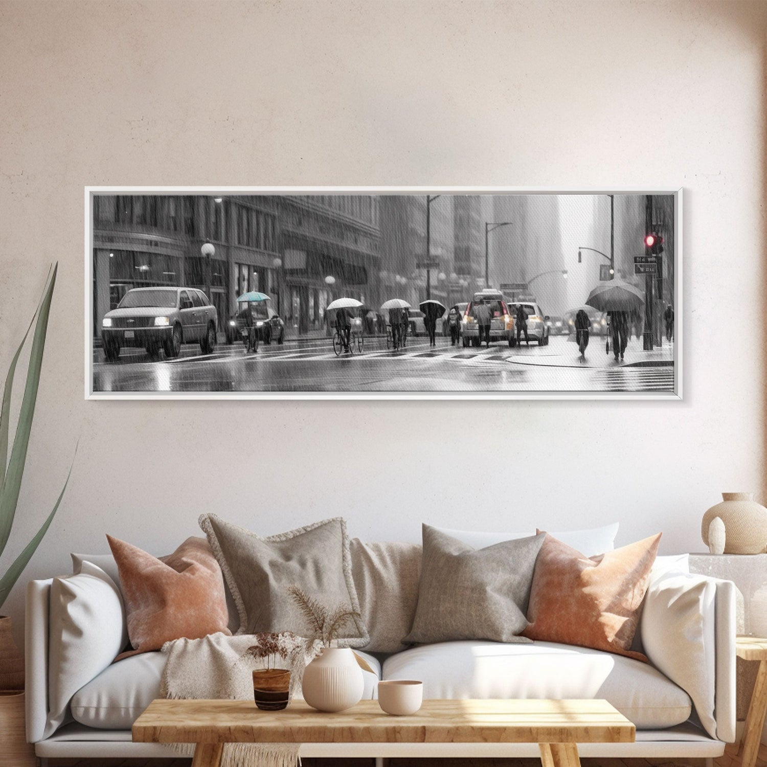 Rainy Day In The City Canvas Print, People With Umbrellas, City Art, Wall Decor, Large Urban Art Print, Panoramic, Wall Art, Canvas Print - 10x30 Inches / No Frame - Stretched Canvas Only is backordered and will ship as soon as it is back in stock.