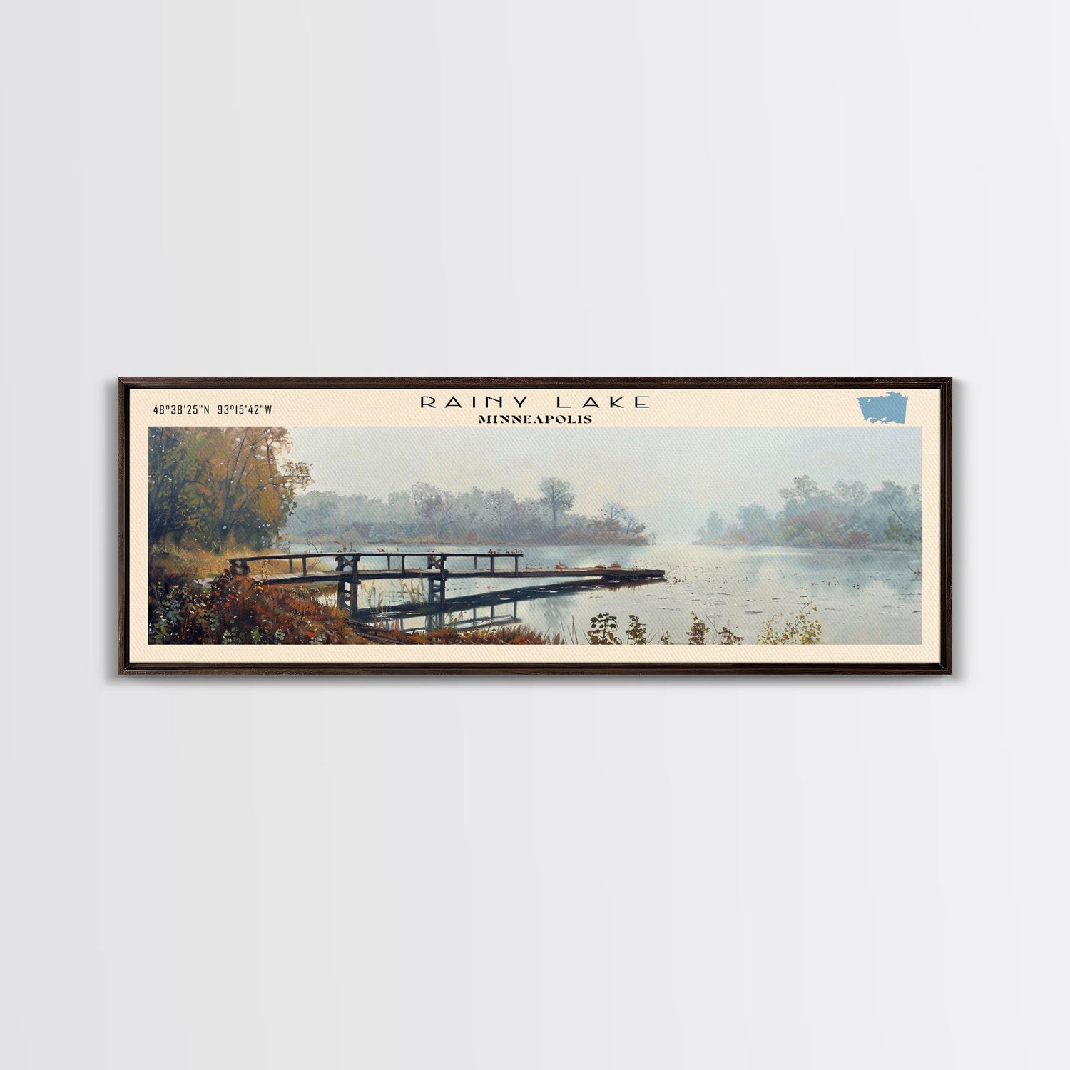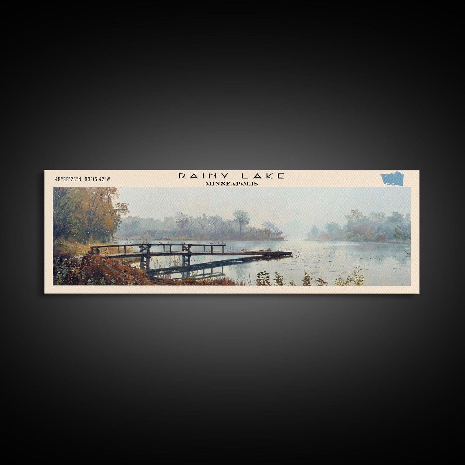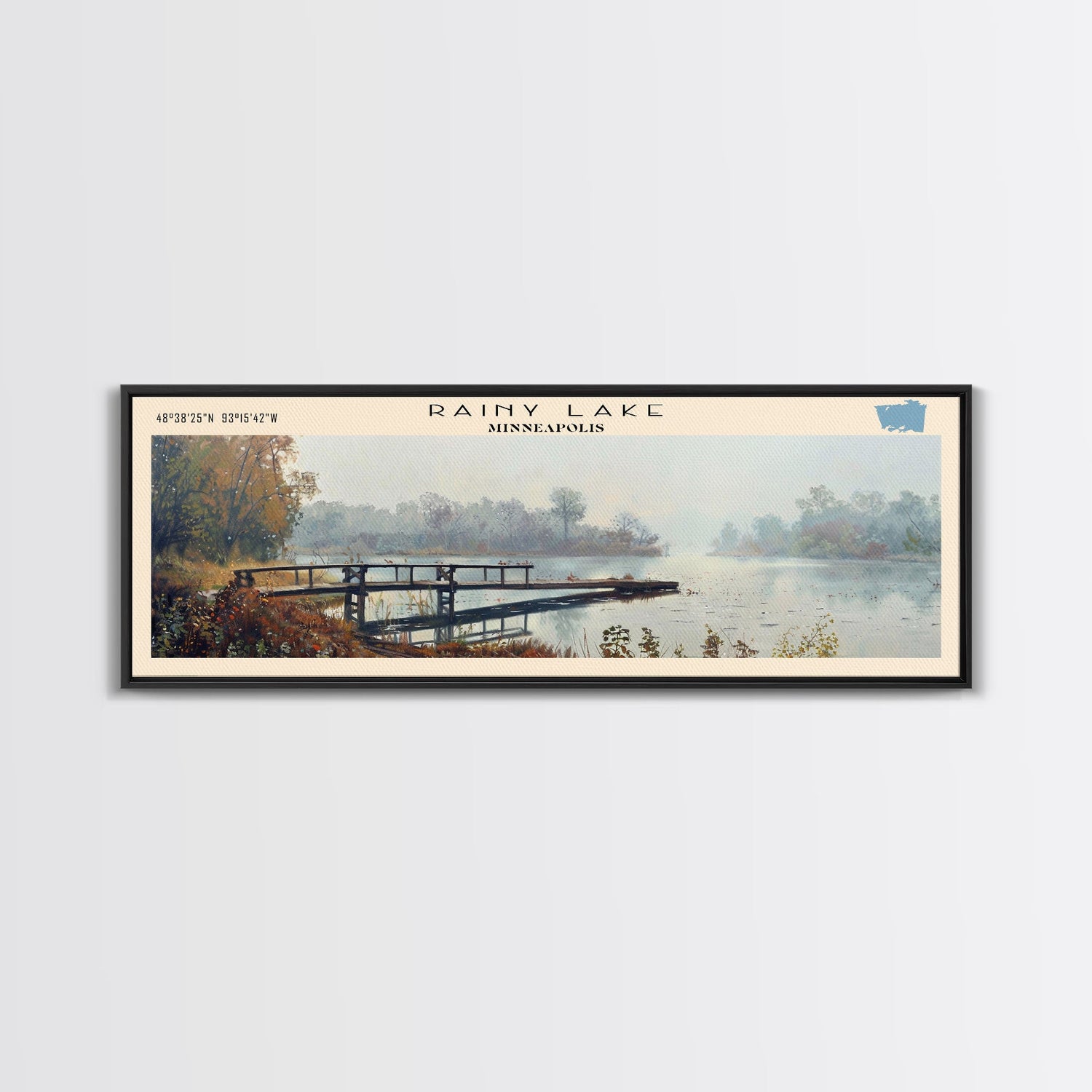 Rainy Lake Minneapolis Framed Canvas Print, Lake House Decor, Panoramic Wall Art, Travel Poster, Beautiful Landscape Painting, Modern Art
