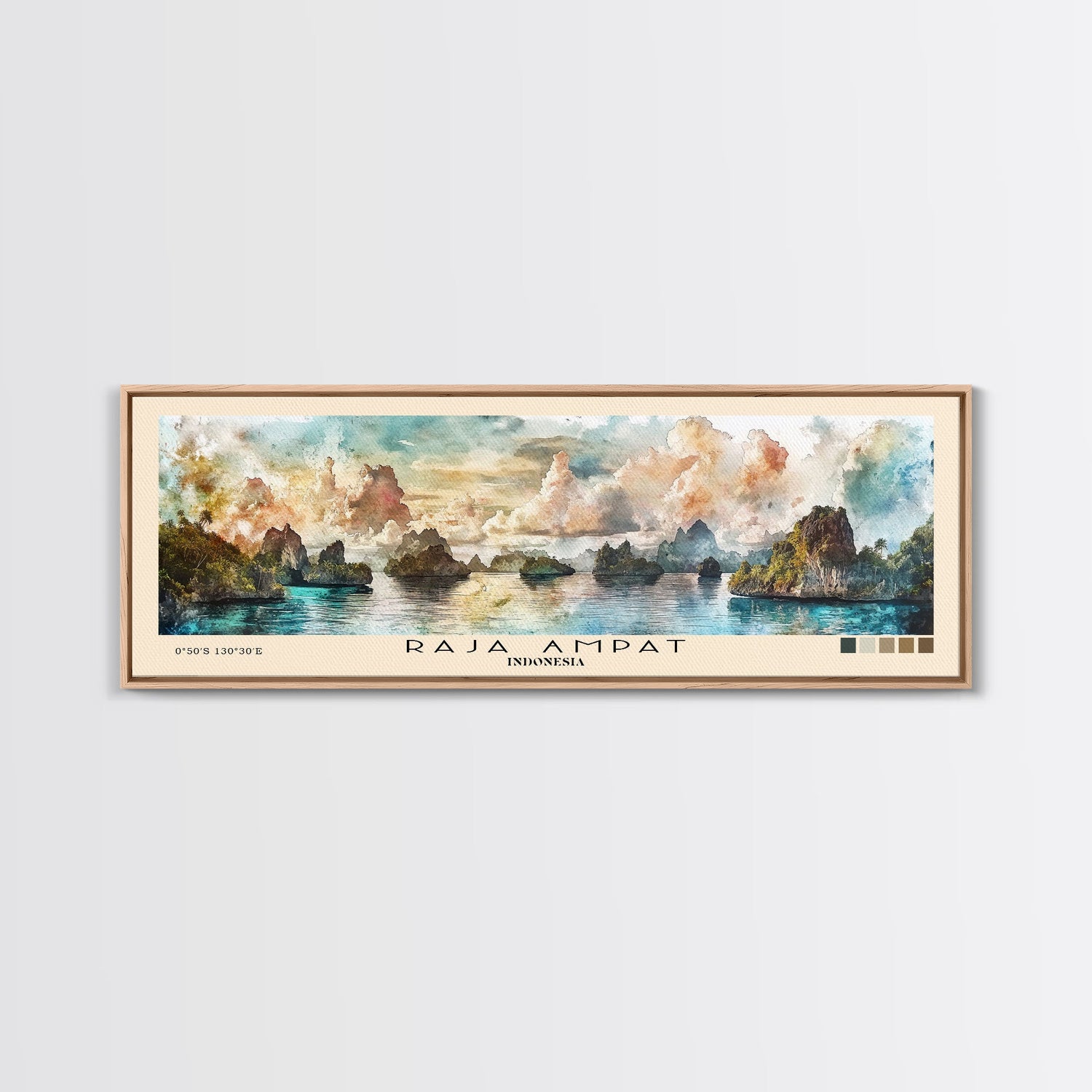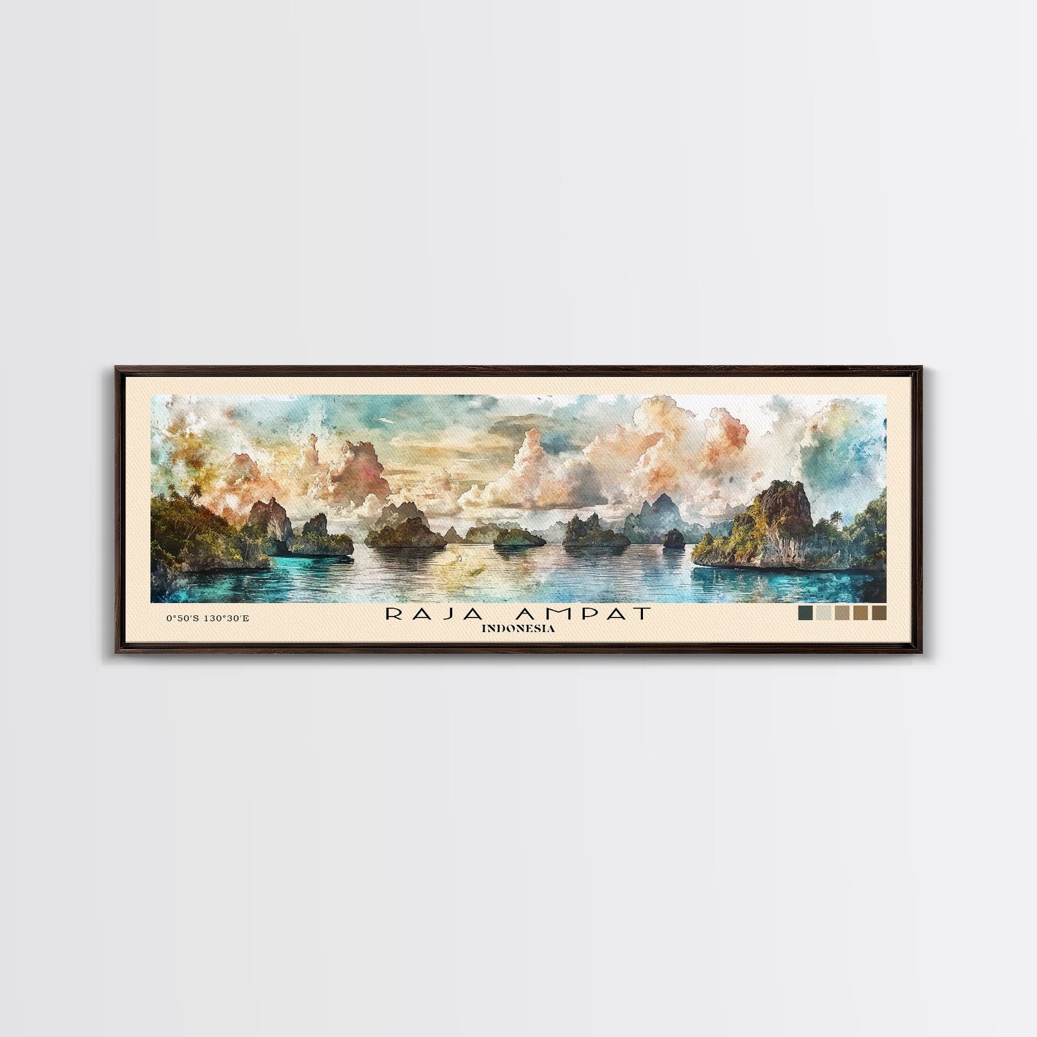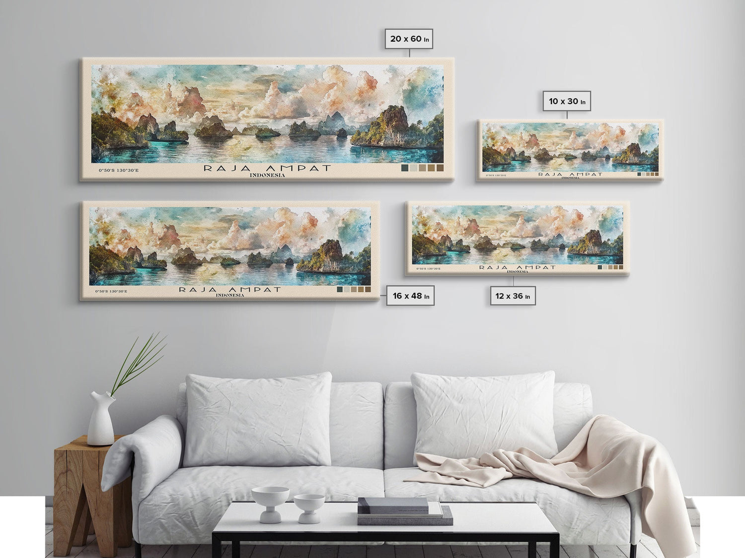 Raja Ampat, Indonesia Watercolor Beach Print, Vacation Gift, Indonesia Wall Art, Beach Painting, Beach Decor, Beach Painting - 10x30 Inches / No Frame - Stretched Canvas Only is backordered and will ship as soon as it is back in stock.