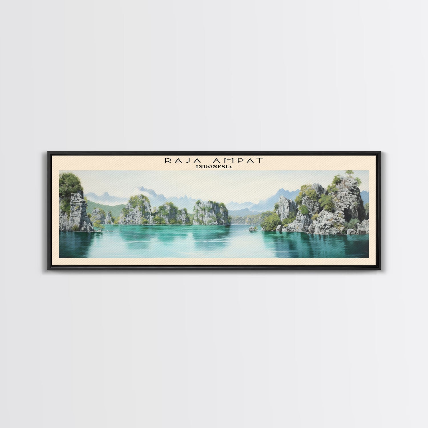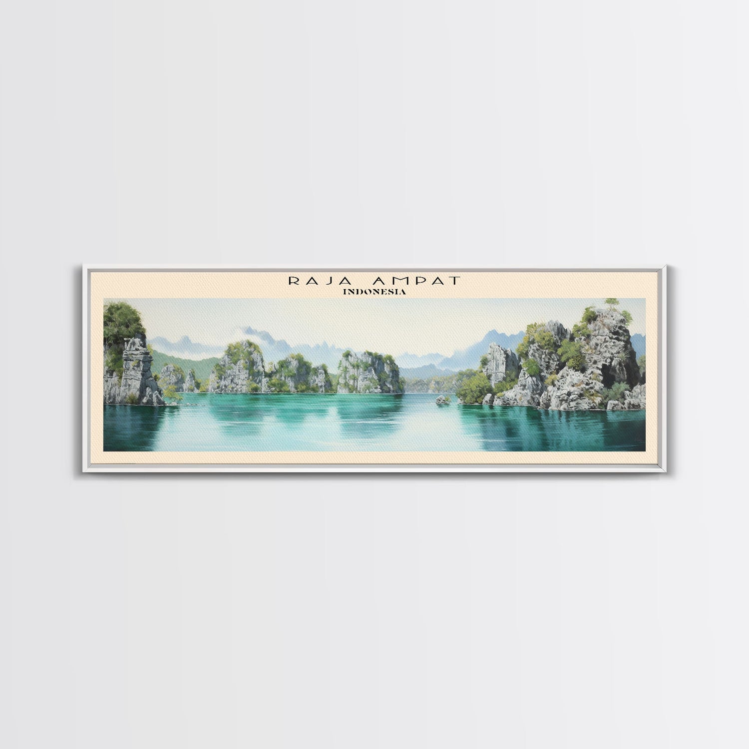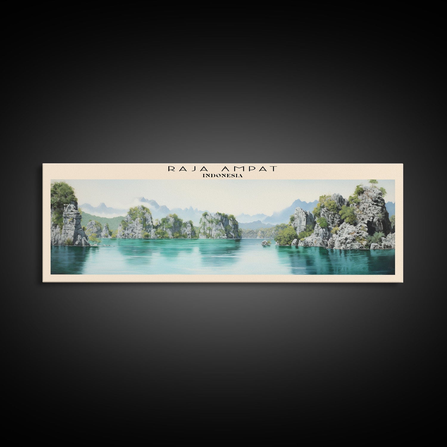 Raja Ampat Travel Print Wall Art, Travel Poster Print, Retro Style COUNTRY Home Decor, Wall Hanging, Travel Gift Idea, Unique Metal Art - 10x30 Inches / No Frame - Stretched Canvas Only is backordered and will ship as soon as it is back in stock.