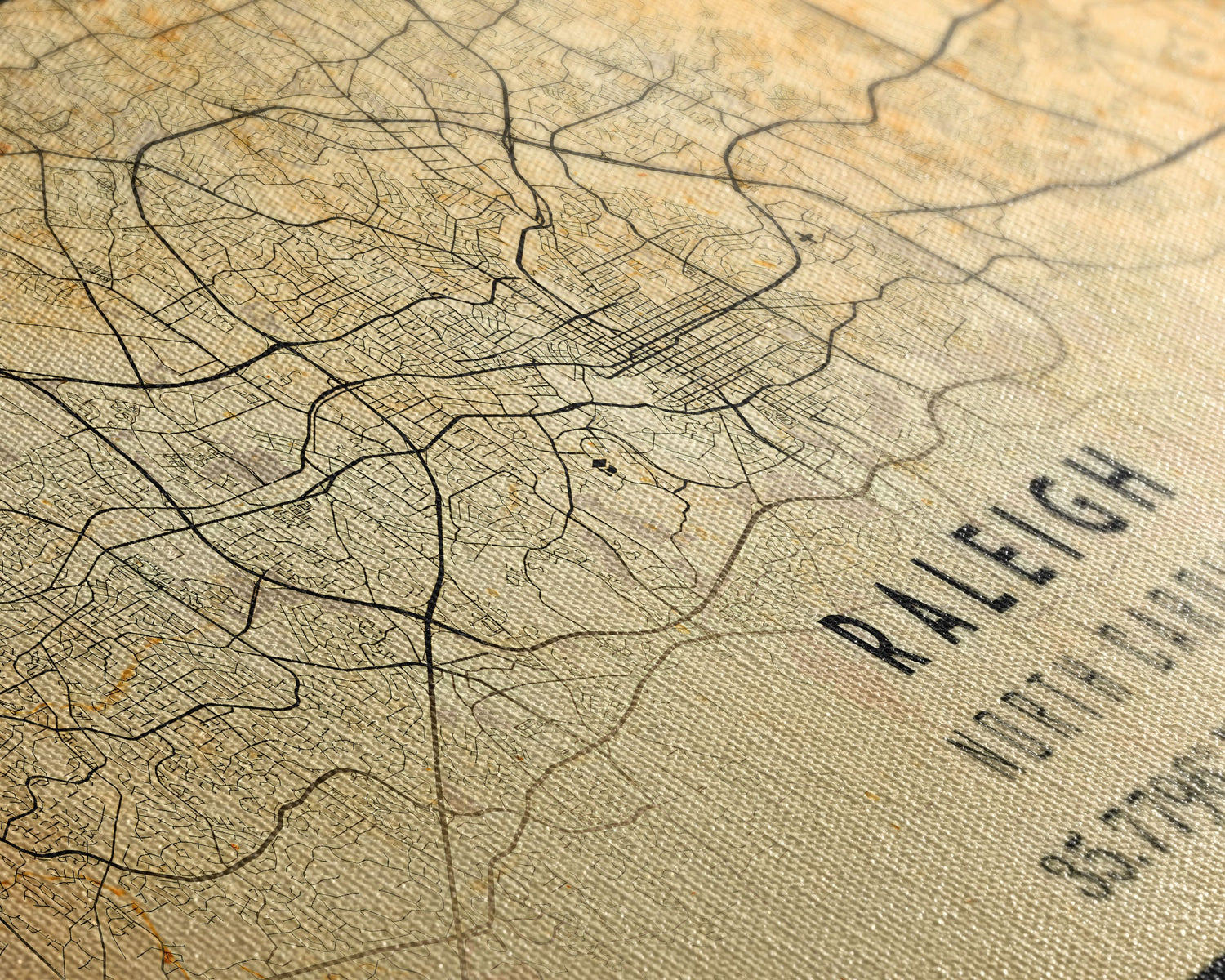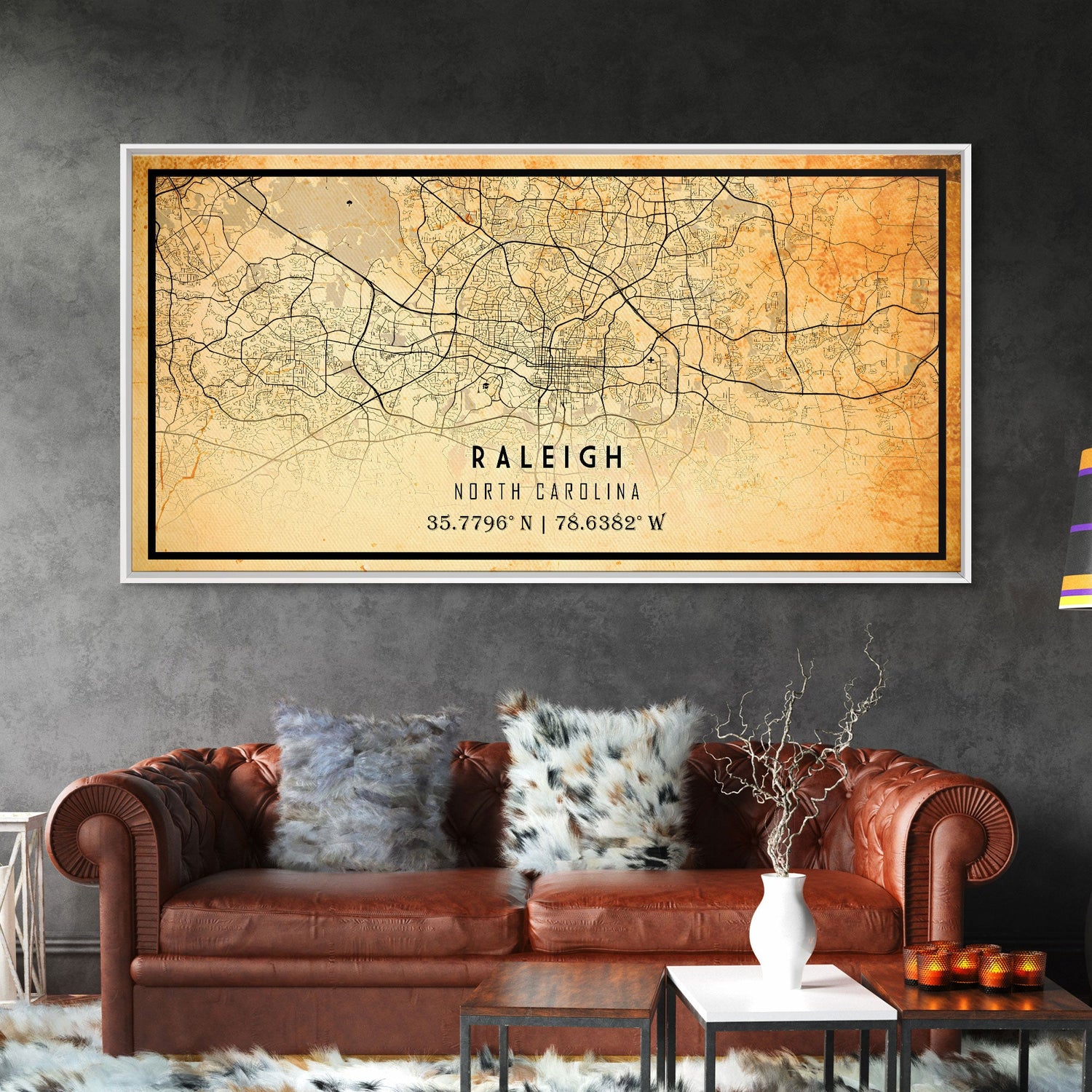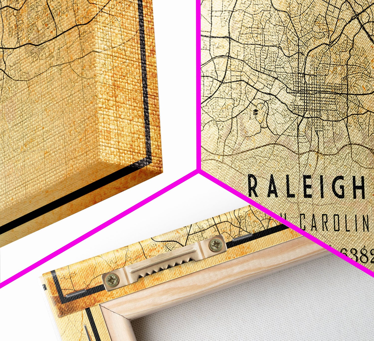Raleigh North Carolina map print poster or framed canvas, Raleigh map print poster canvas, Raleigh city map Canvas print, Vintage Travel Art