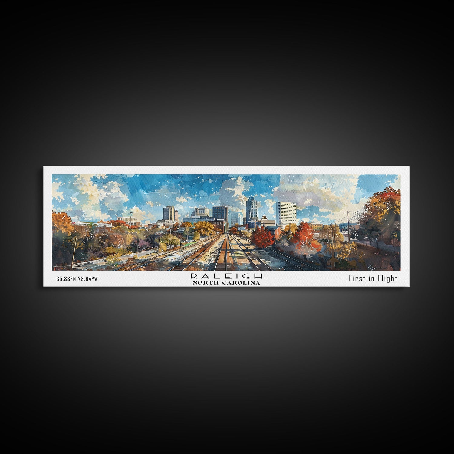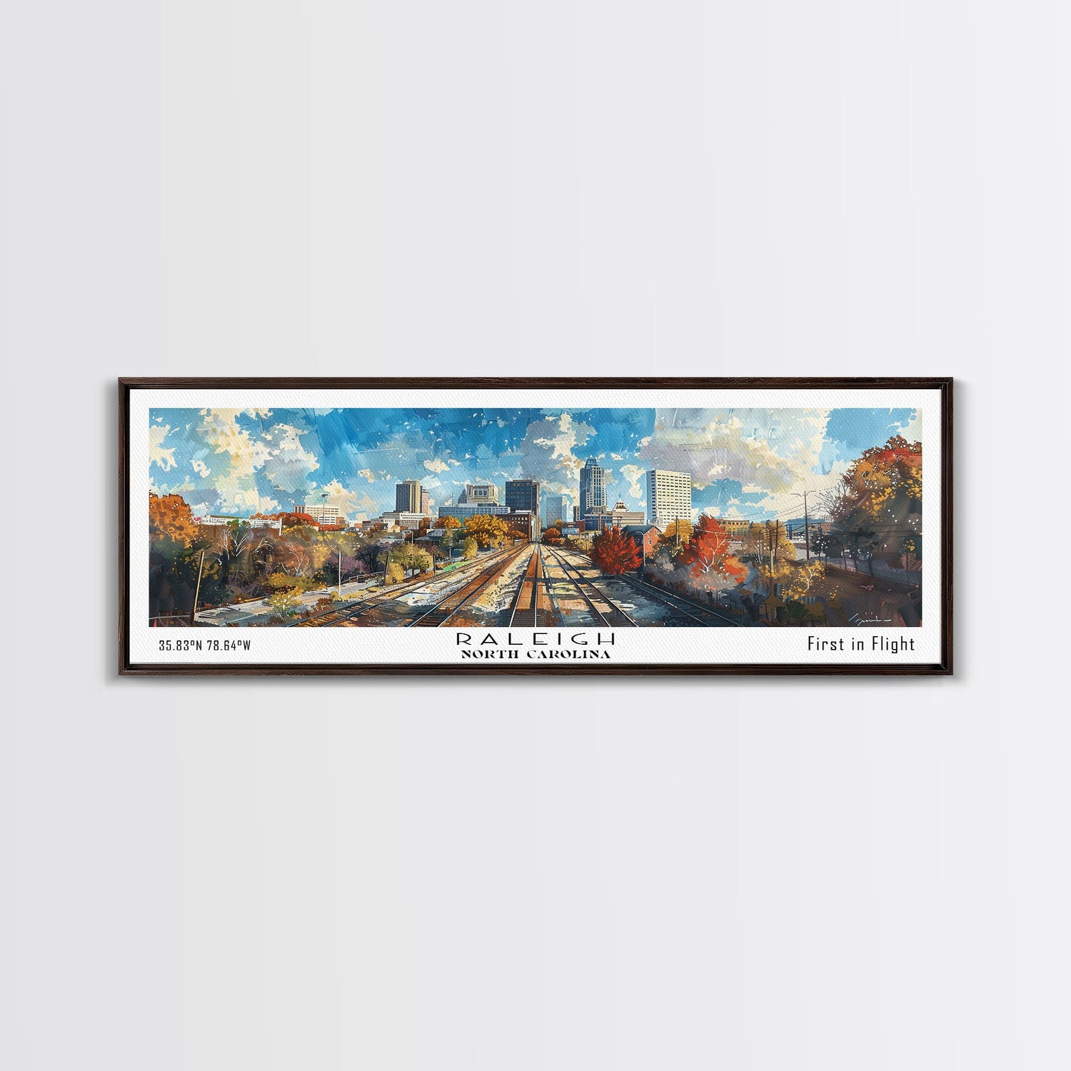 Raleigh North Carolina Panoramic Print, Beautiful Framed Canvas Print, Travel Poster Art, Living Room Decor, Office Wall Art