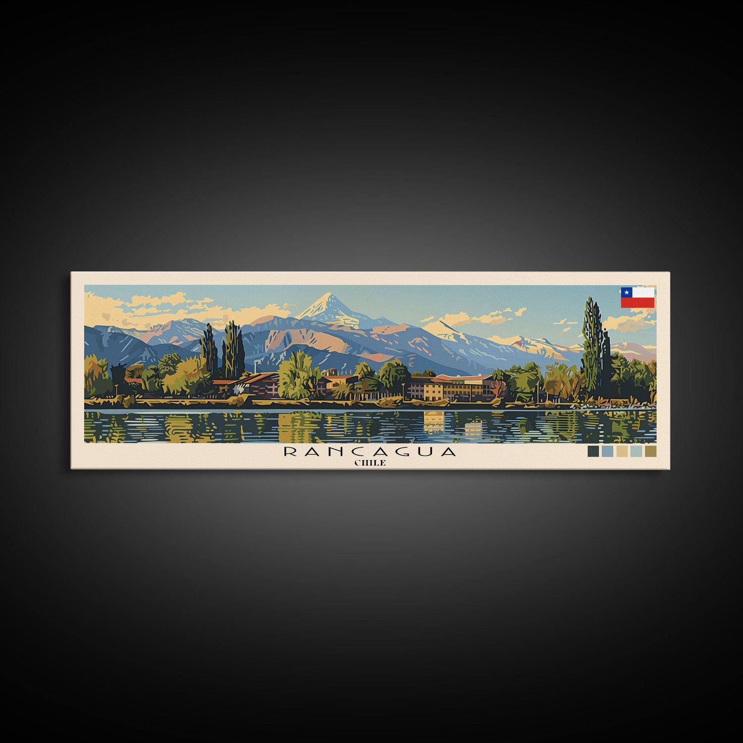Rancagua, Chile Panoramic Canvas Print, Rancagua, Chile Painting, Chile Art, Rancagua Travel Poster, Travel Art, Guest Room Painting