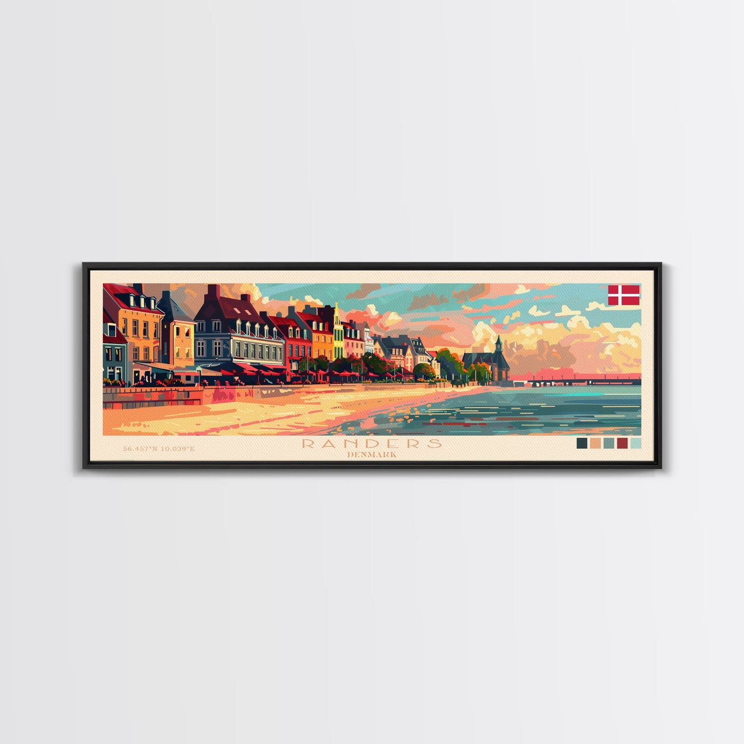 Randers Denmark Travel Art, City Art, Framed Canvas Print or Metal Wall Art, Europe Travel Poster, Panoramic Wall Art, Extra Wide Wall Art
