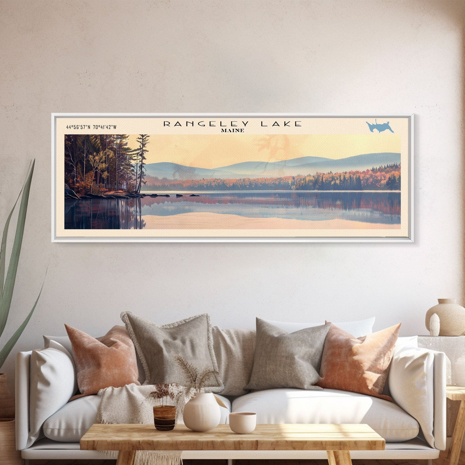Rangeley Lake Maine Framed Canvas Print, Lake House Decor, Wall Art, Panoramic Travel Poster, Scenic Wall Art, Bedroom Decor