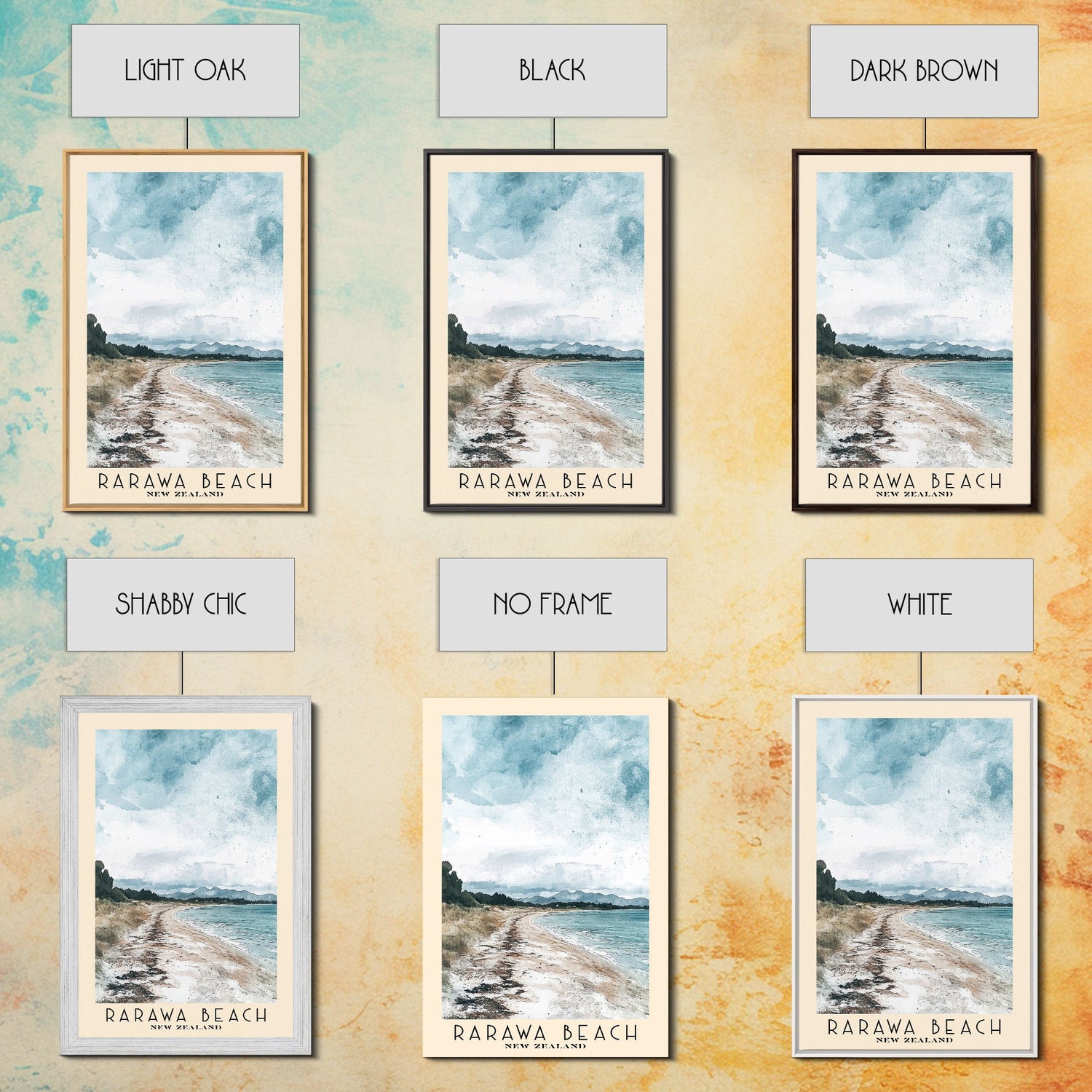 Rarawa Beach, New Zealand Watercolor Print, Vacation Gift, New Zealand Wall Art, Beach Painting, Beach Decor, Large Wall Art, Wood Frame Art