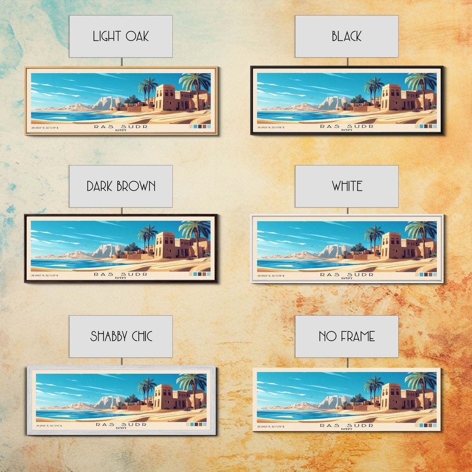 Ras Sudr, Egypt Panoramic Print, Vacation Gift, Egypt Wall Art, Beach Painting, Beach Decor, Large Wall Art, Wood Frame Art - 10x30 Inches / No Frame - Stretched Canvas Only is backordered and will ship as soon as it is back in stock.