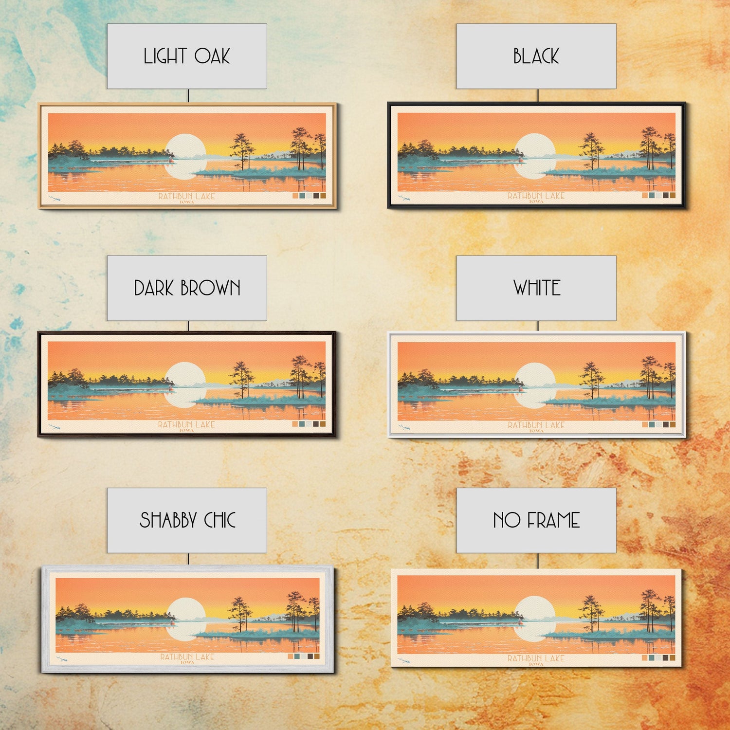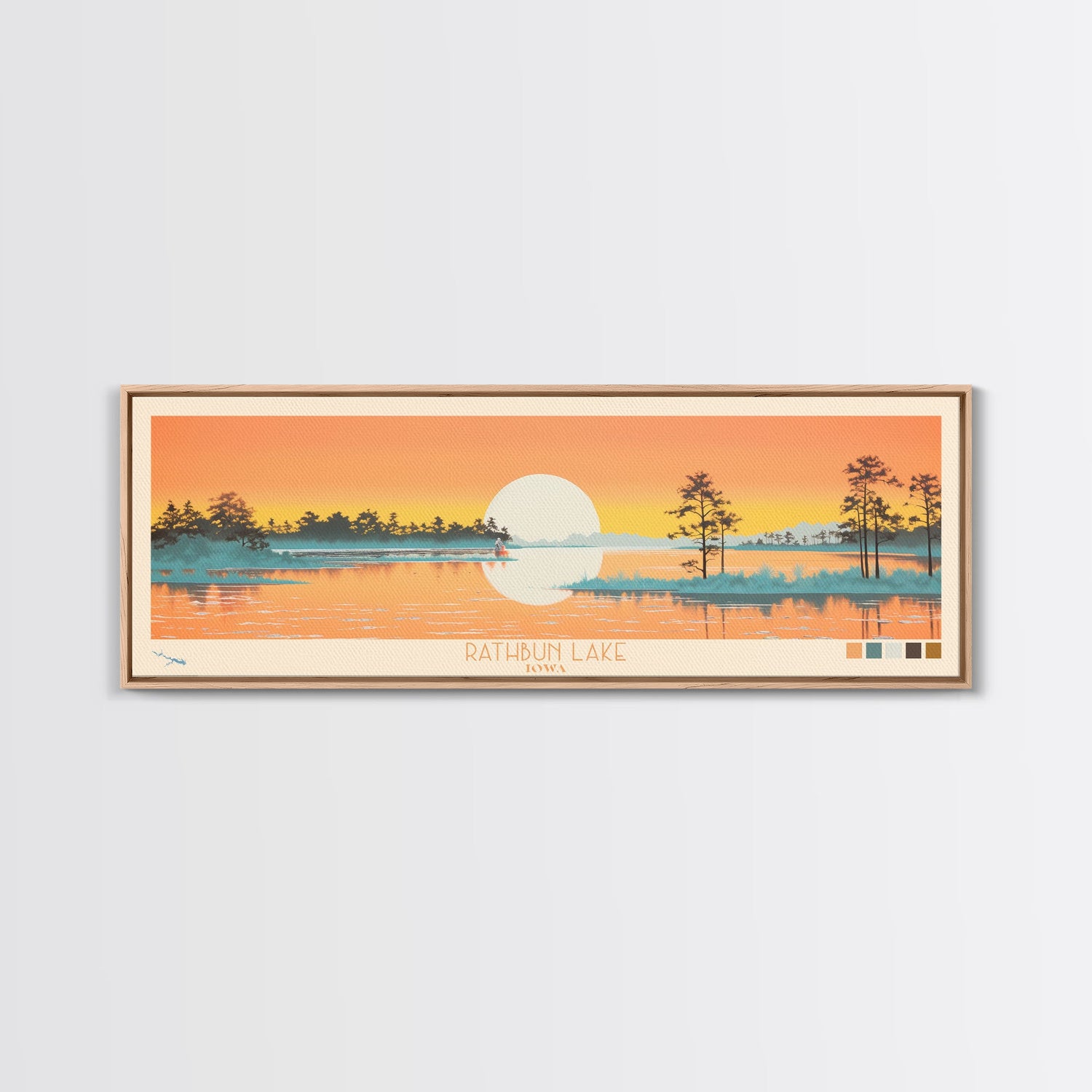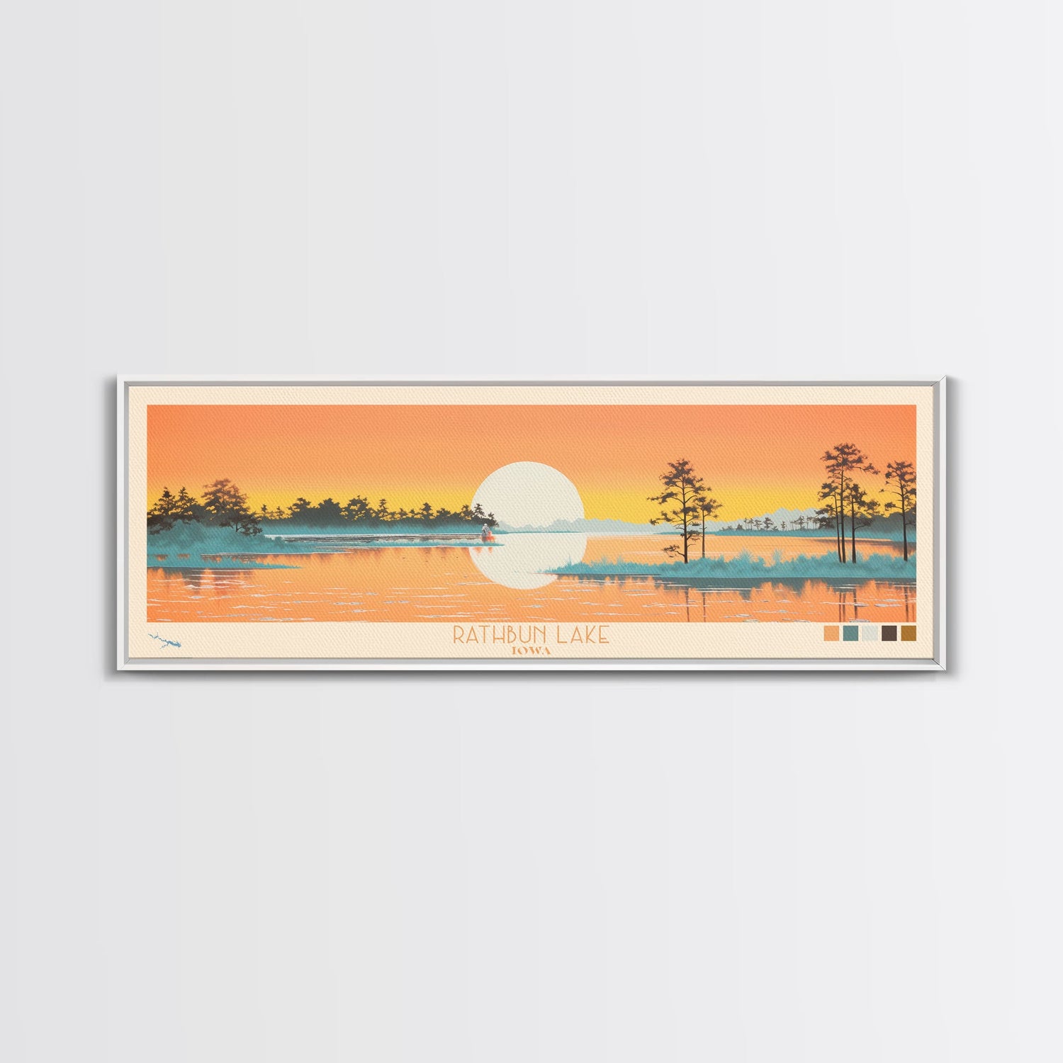 Rathbun Lake, Iowa Framed Canvas Print, Home Decor, Midcentury Modern, Panoramic Wall Art, Travel Poster, Pop Art - 10x30 Inches / No Frame - Stretched Canvas Only is backordered and will ship as soon as it is back in stock.