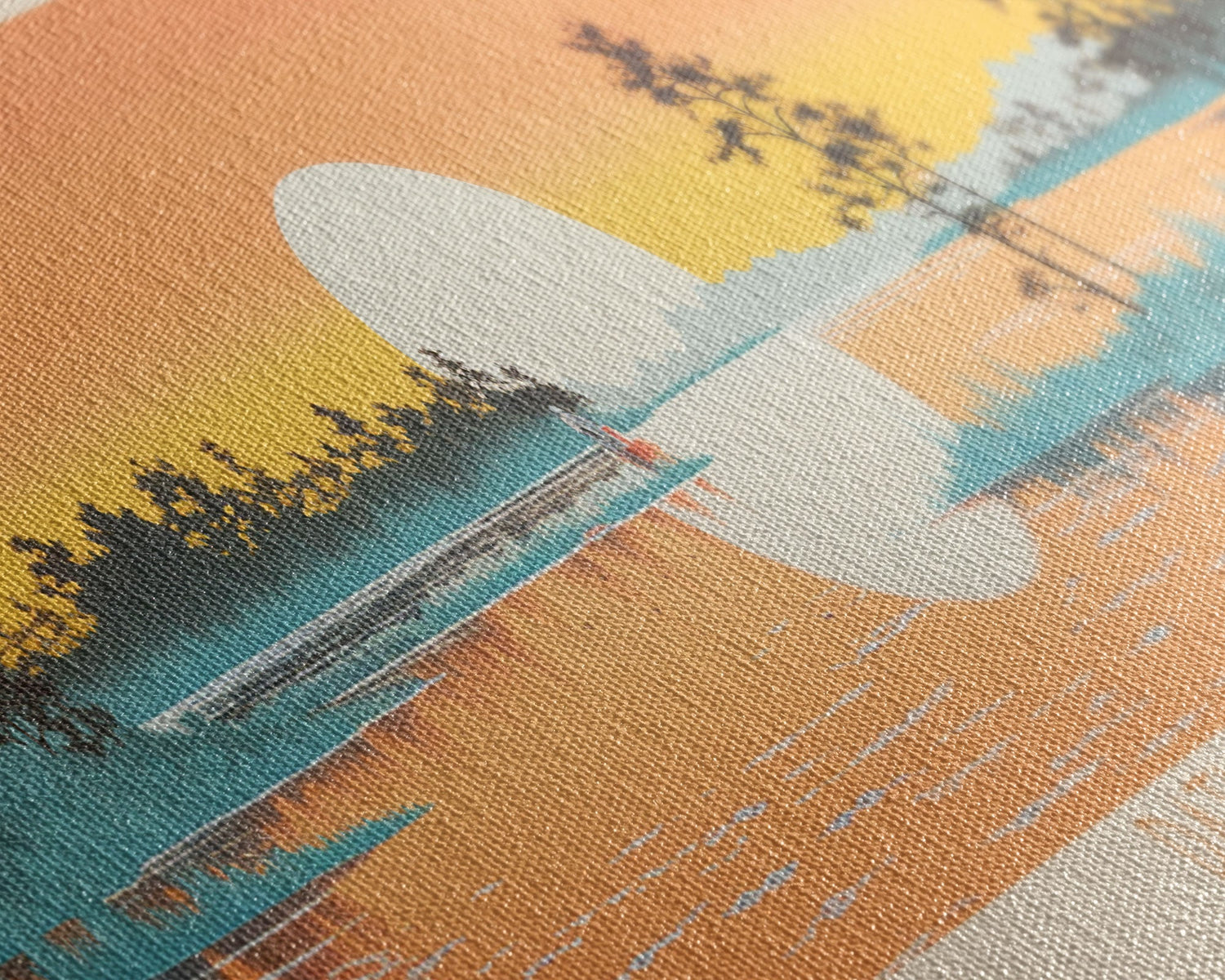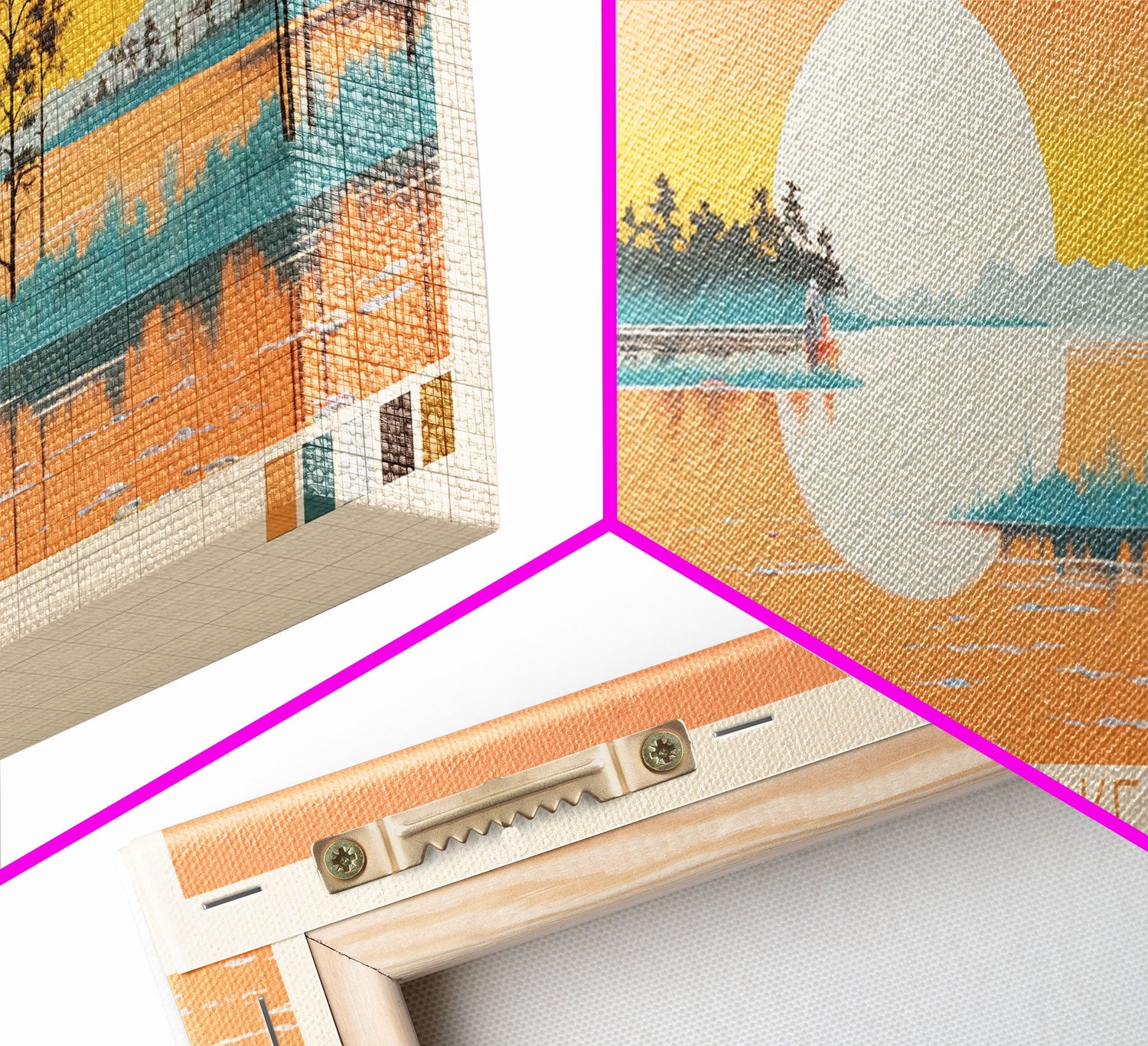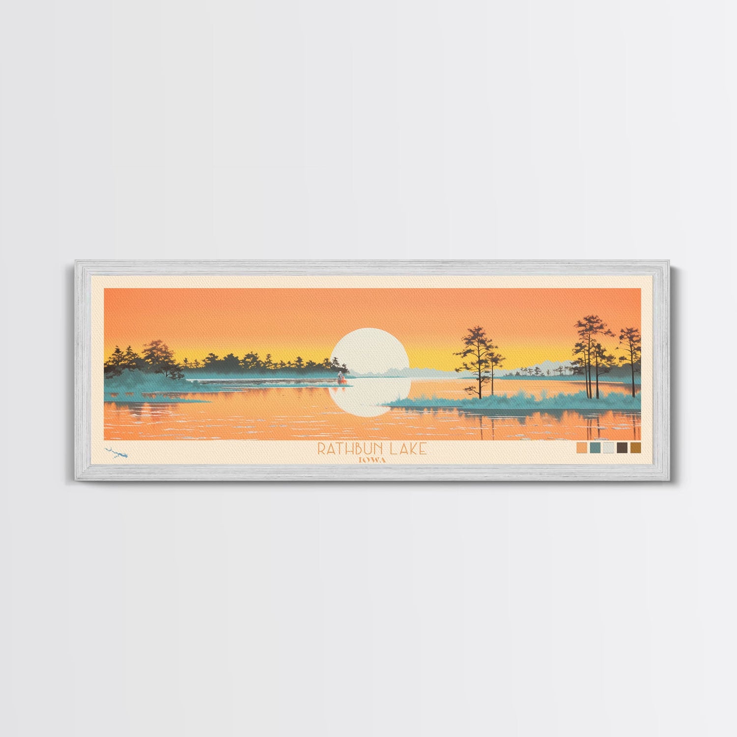 Rathbun Lake, Iowa Framed Canvas Print, Home Decor, Midcentury Modern, Panoramic Wall Art, Travel Poster, Pop Art