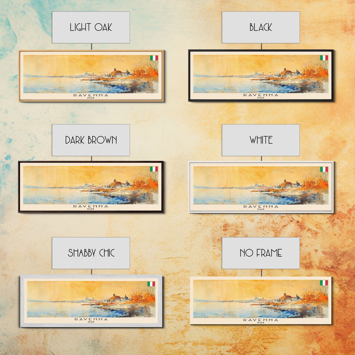 Ravenna Italy Panoramic Travel Poster, Framed Canvas Print or Metal Wall Art, Travel Art, Home Decor, Panoramic Painting, Midcentury Art