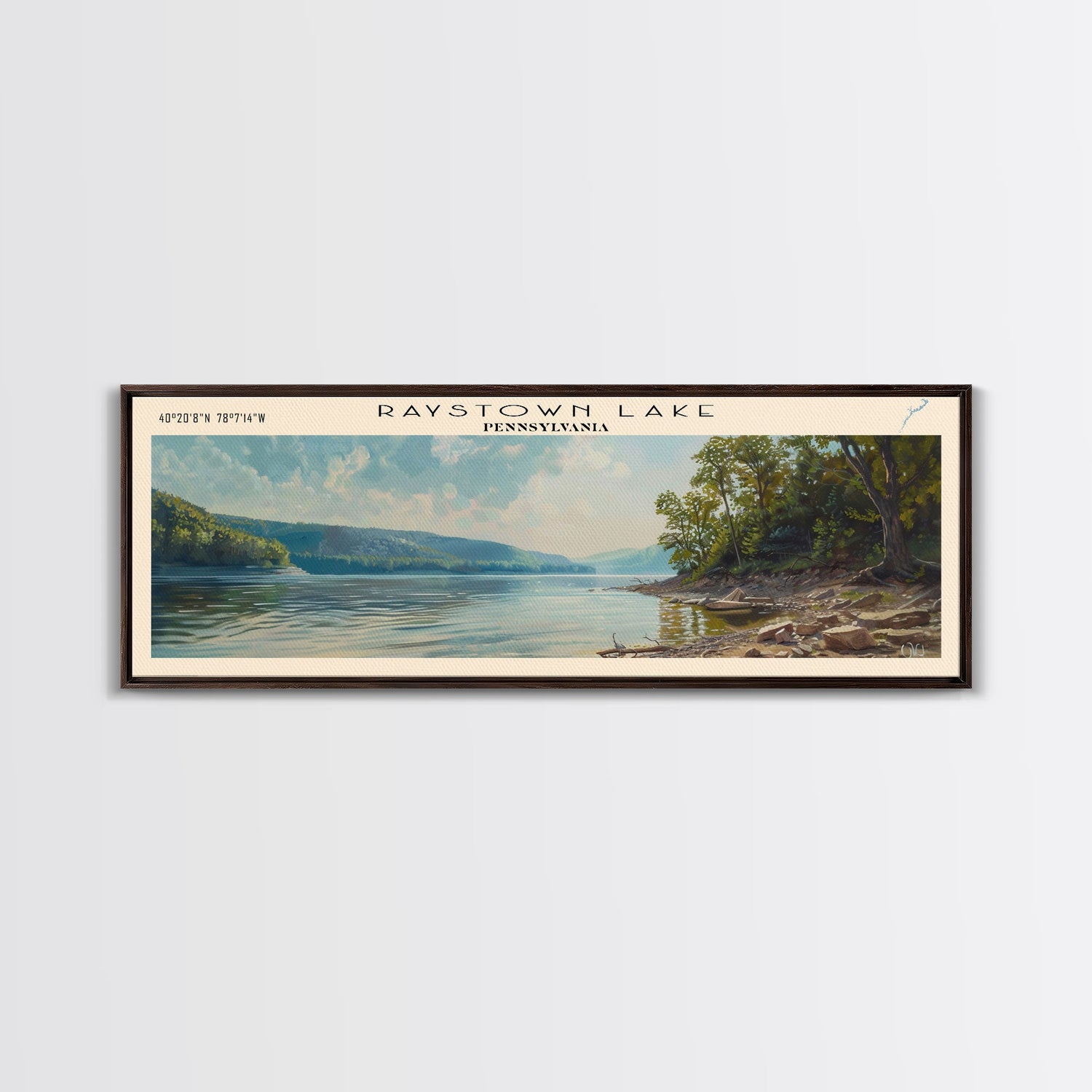 Raystown Lake Pennsylvania Framed Canvas Print, Lake House Decor, Wall Art, Panoramic Travel Poster, Scenic Landscape Painting, Modern Art