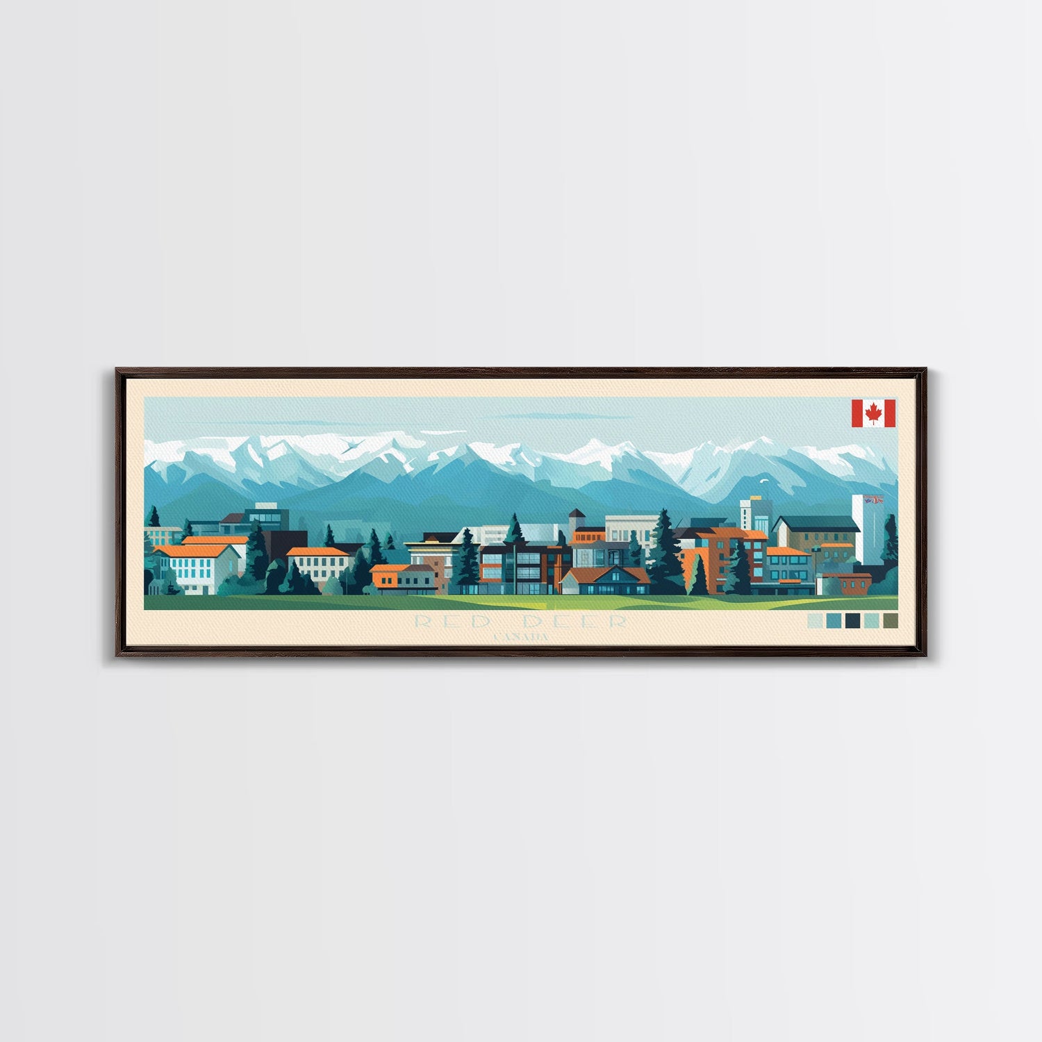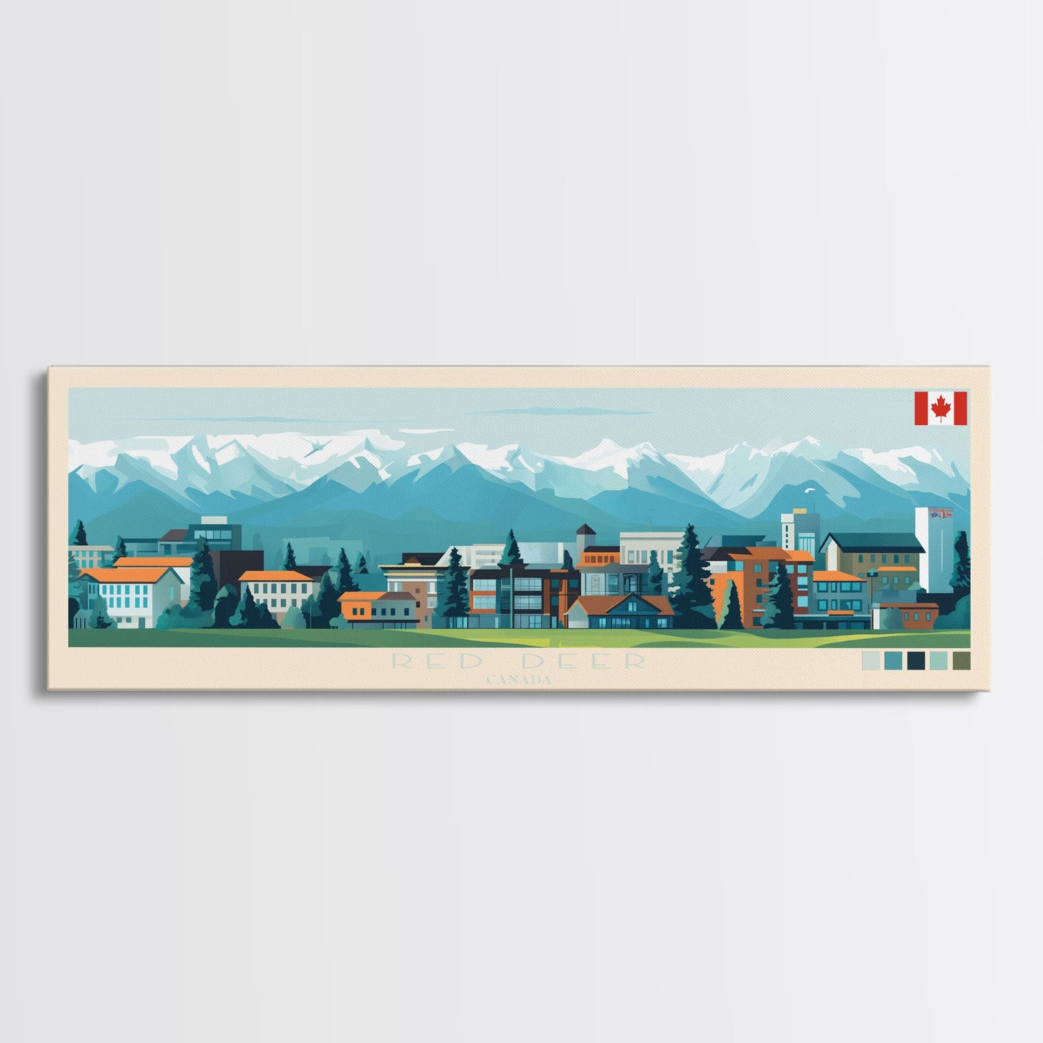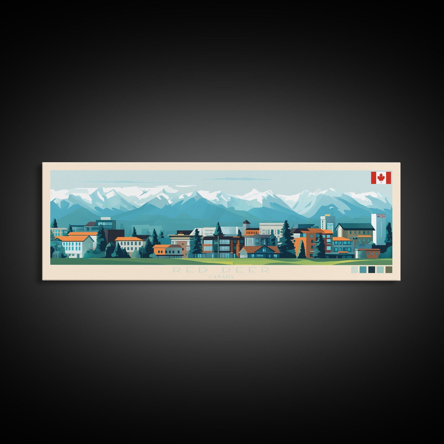 Red Deer, Canada Travel Poster Panoramic Canvas Print, Red Deer, Canada Painting, Canada Art, Red Deer Travel Art, Guest Room Painting - 10x30 Inches / No Frame - Stretched Canvas Only is backordered and will ship as soon as it is back in stock.