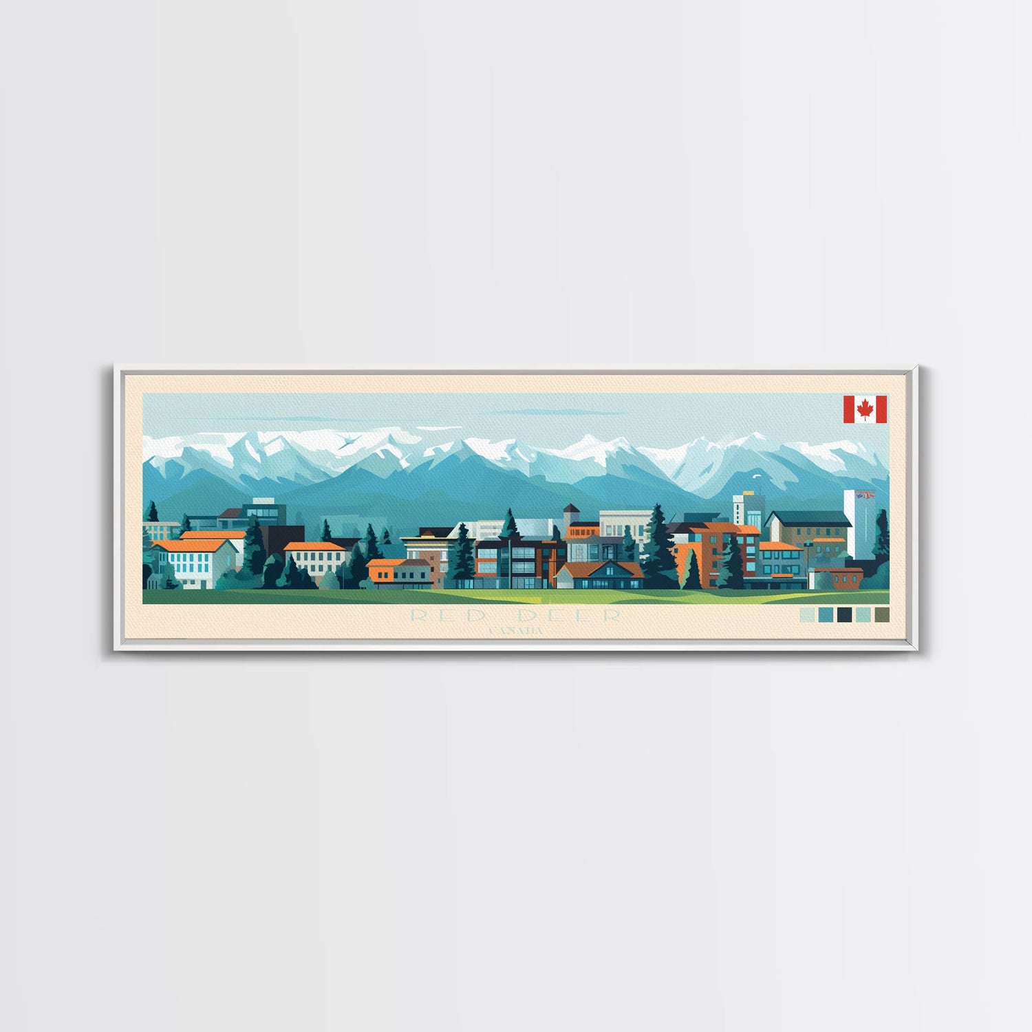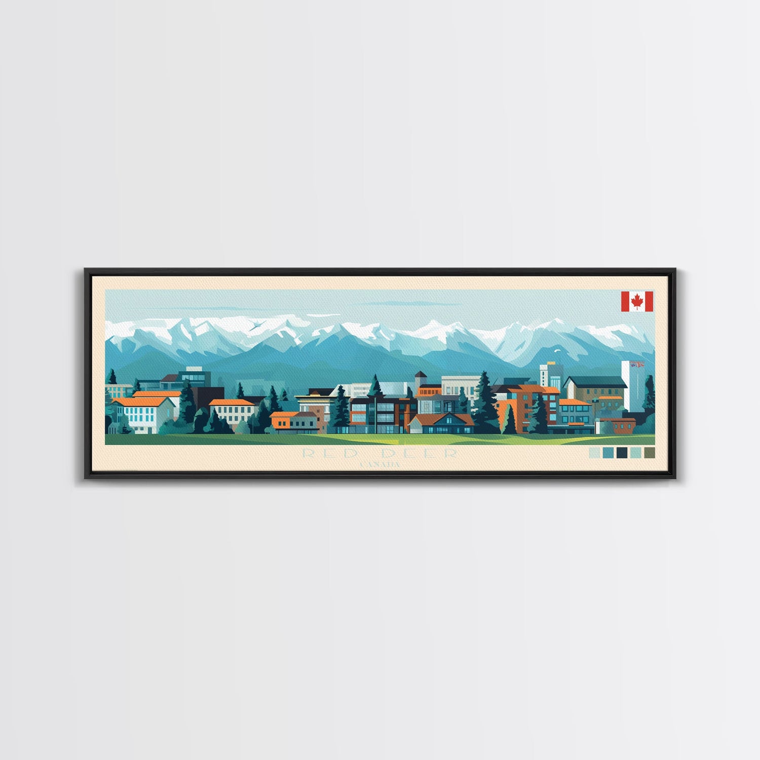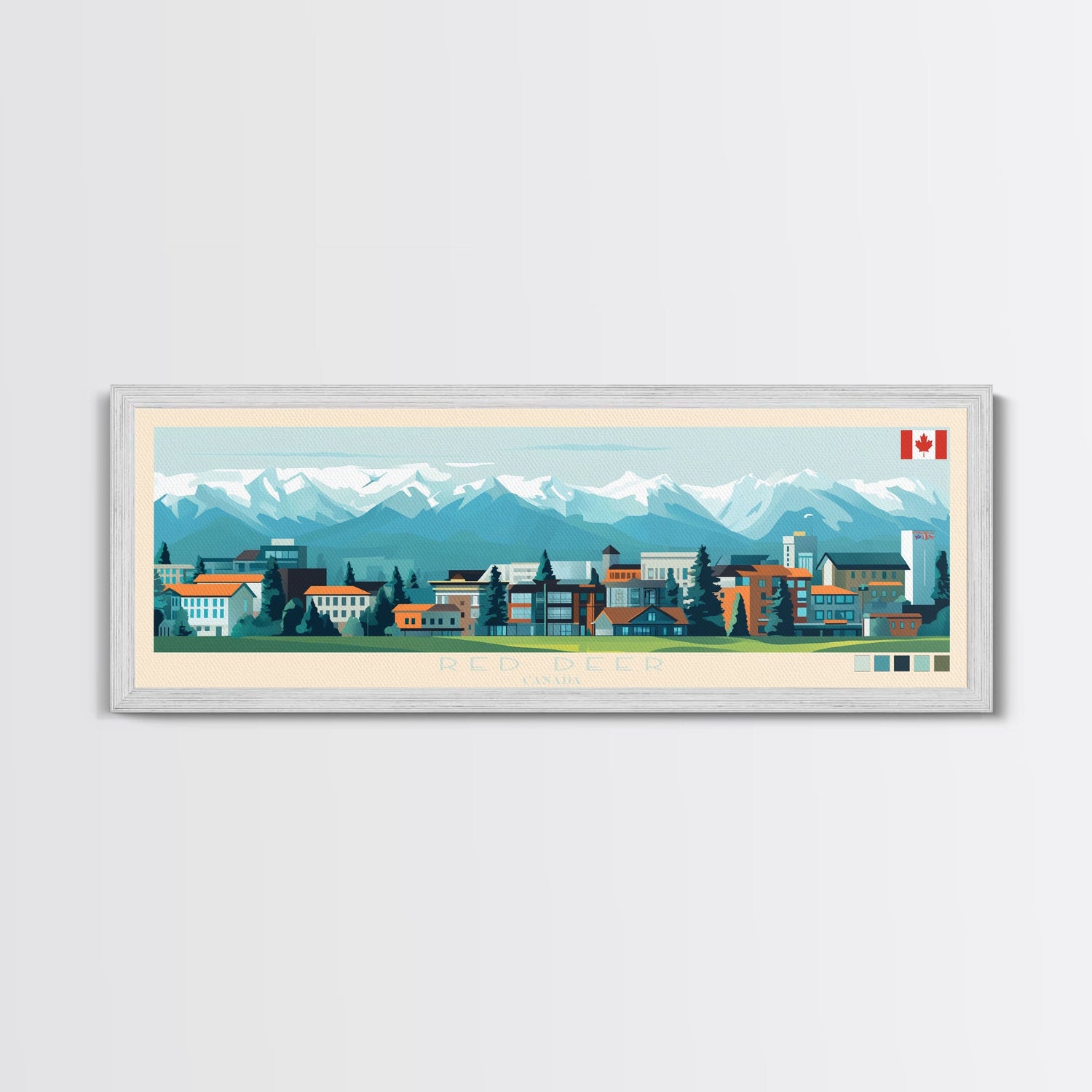 Red Deer, Canada Travel Poster Panoramic Canvas Print, Red Deer, Canada Painting, Canada Art, Red Deer Travel Art, Guest Room Painting - 10x30 Inches / No Frame - Stretched Canvas Only is backordered and will ship as soon as it is back in stock.
