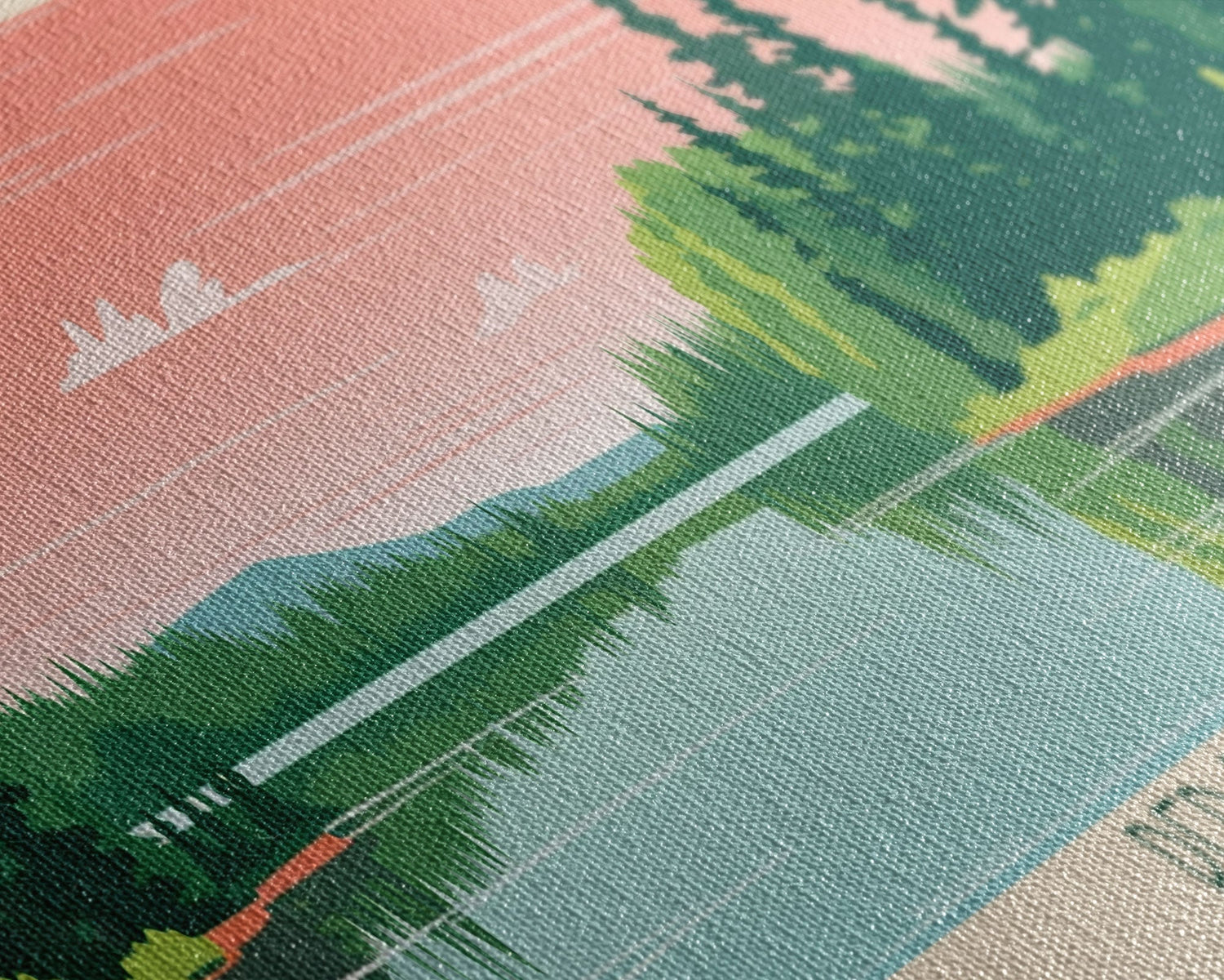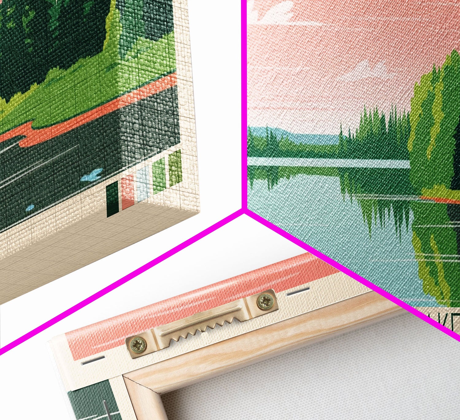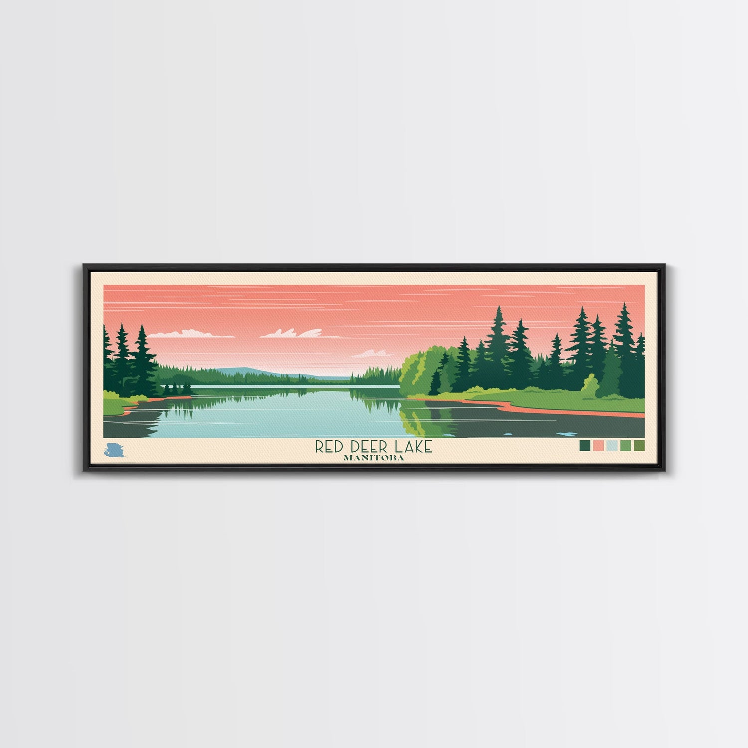 Red Deer Lake, Manitoba Framed Canvas Print, Panoramic Travel Poster, Midcentury Modern Art, Wall Decor, Pop Art, Home Decoration