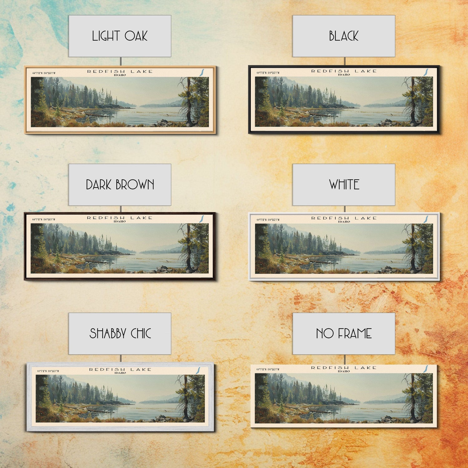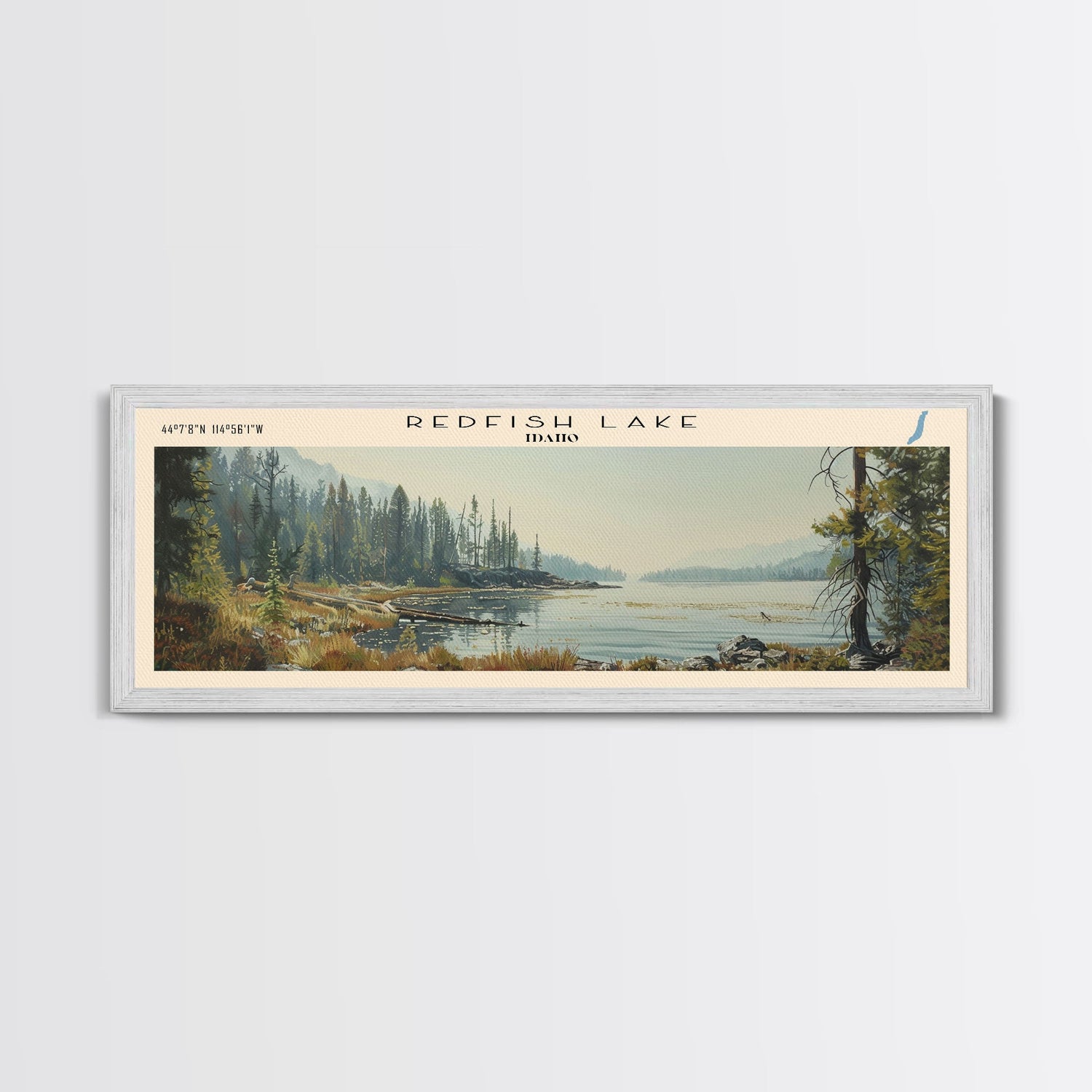 Redfish Lake Idaho Framed Canvas Print, Lake House Decor, Panoramic Wall Art, Travel Poster, Beautiful Landscape Painting, Living Room Decor