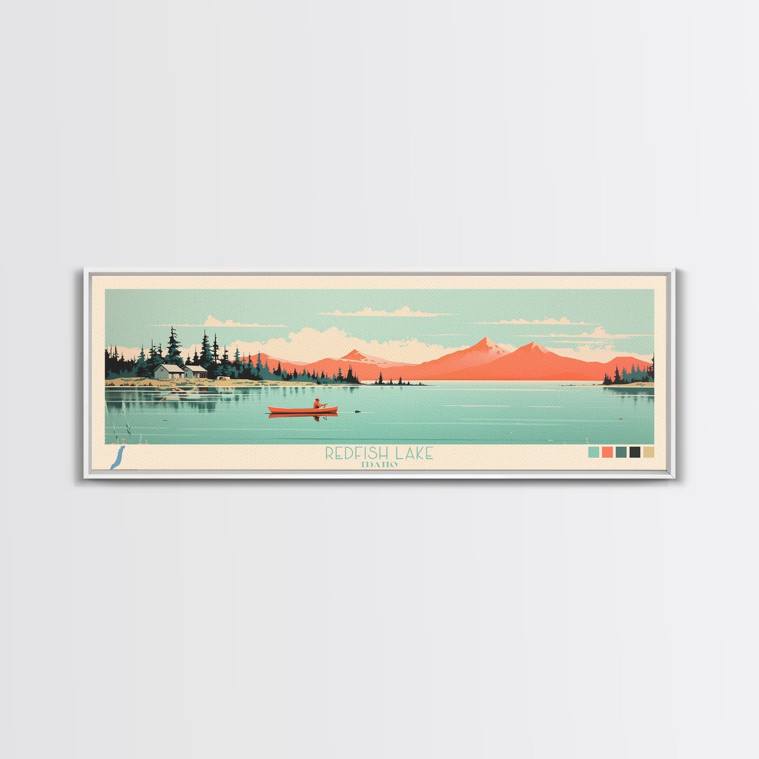 Redfish Lake, Idaho Framed Canvas Print, Panoramic Wall Art, Midcentury Modern Decor, Living Room Art, Pop Art, Travel Poster