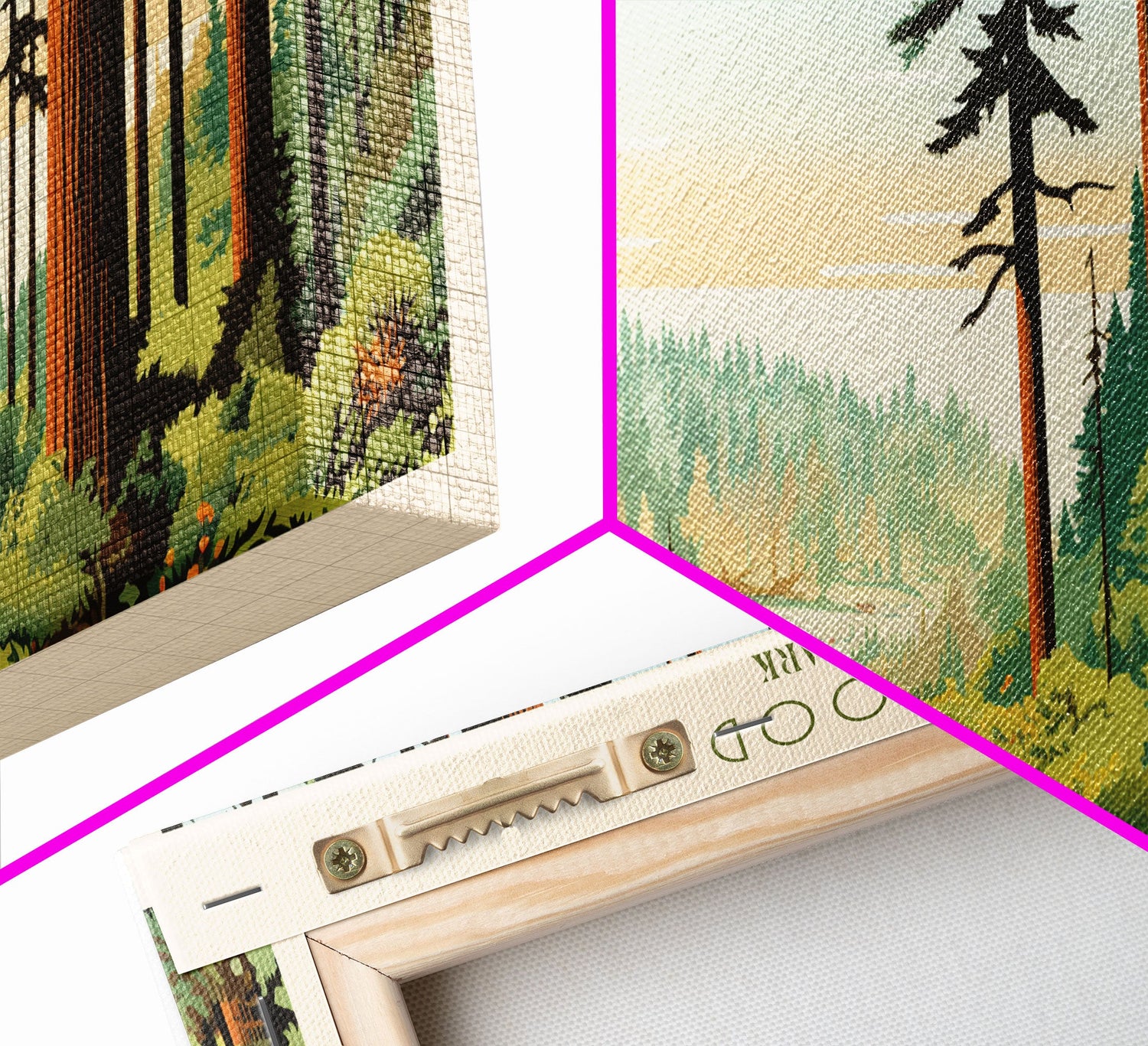 Redwood National Park Panoramic California Travel Art, National Park Print, Minimalist Travel Art, Midcentury Modern Style Landscape - 10x30 Inches / No Frame - Stretched Canvas Only is backordered and will ship as soon as it is back in stock.