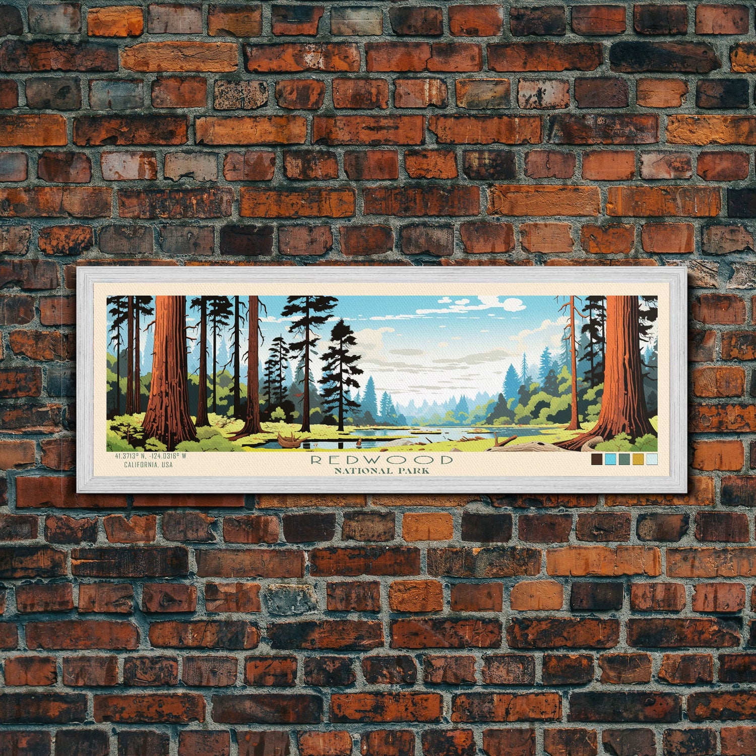 Redwood National Park Panoramic California Travel Art, National Park Print, Minimalist Travel Art, Midcentury Modern Style Landscape