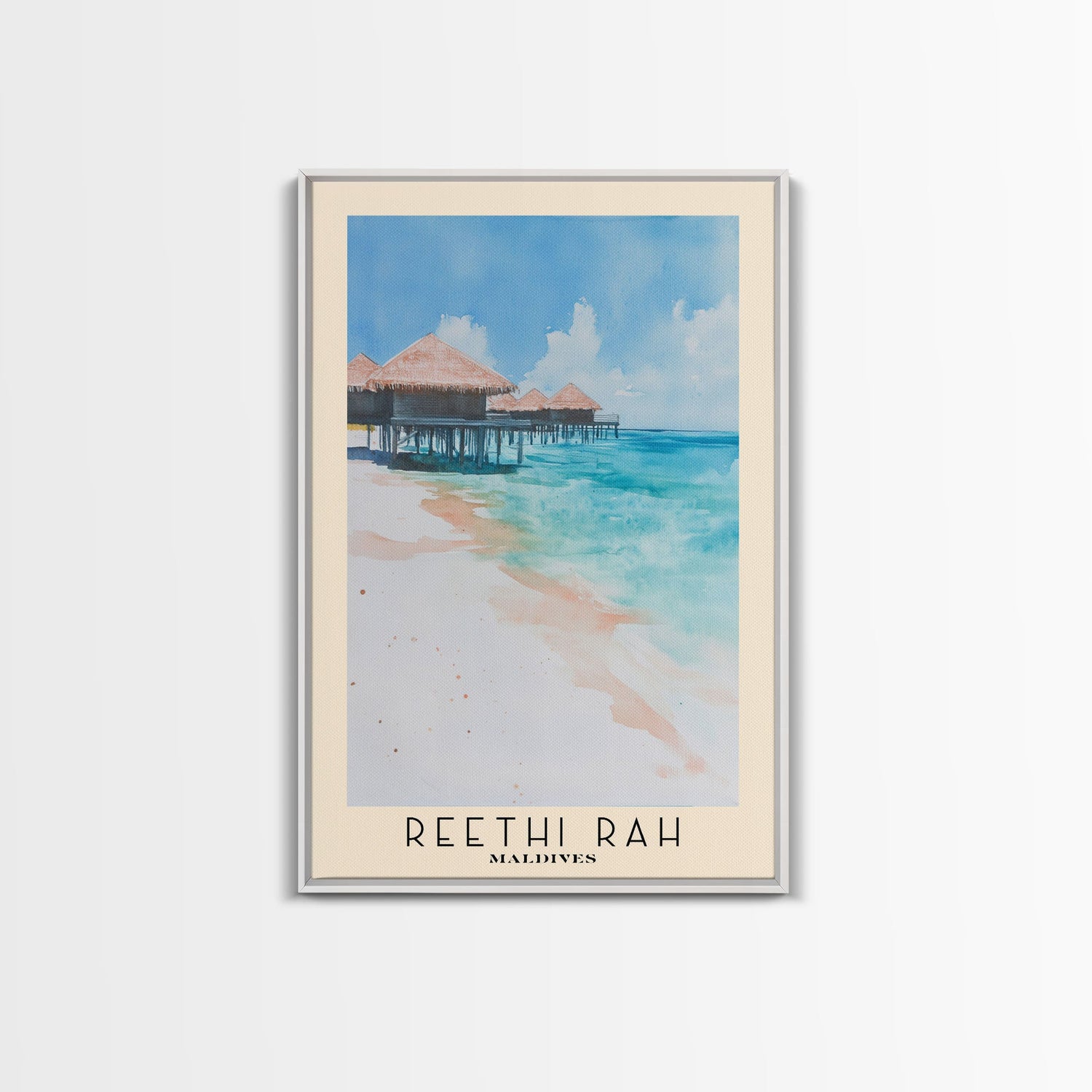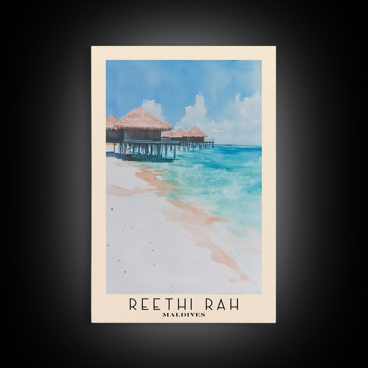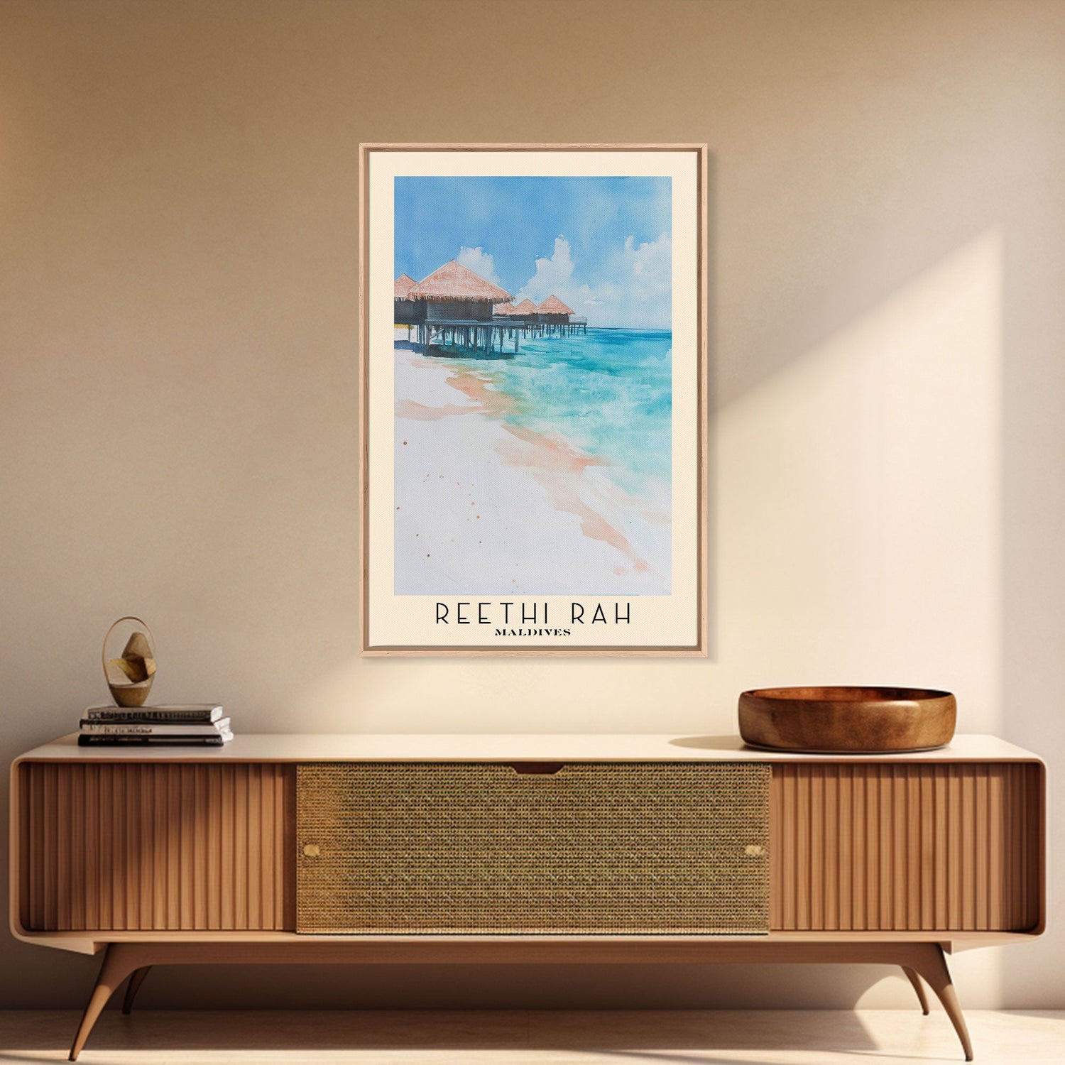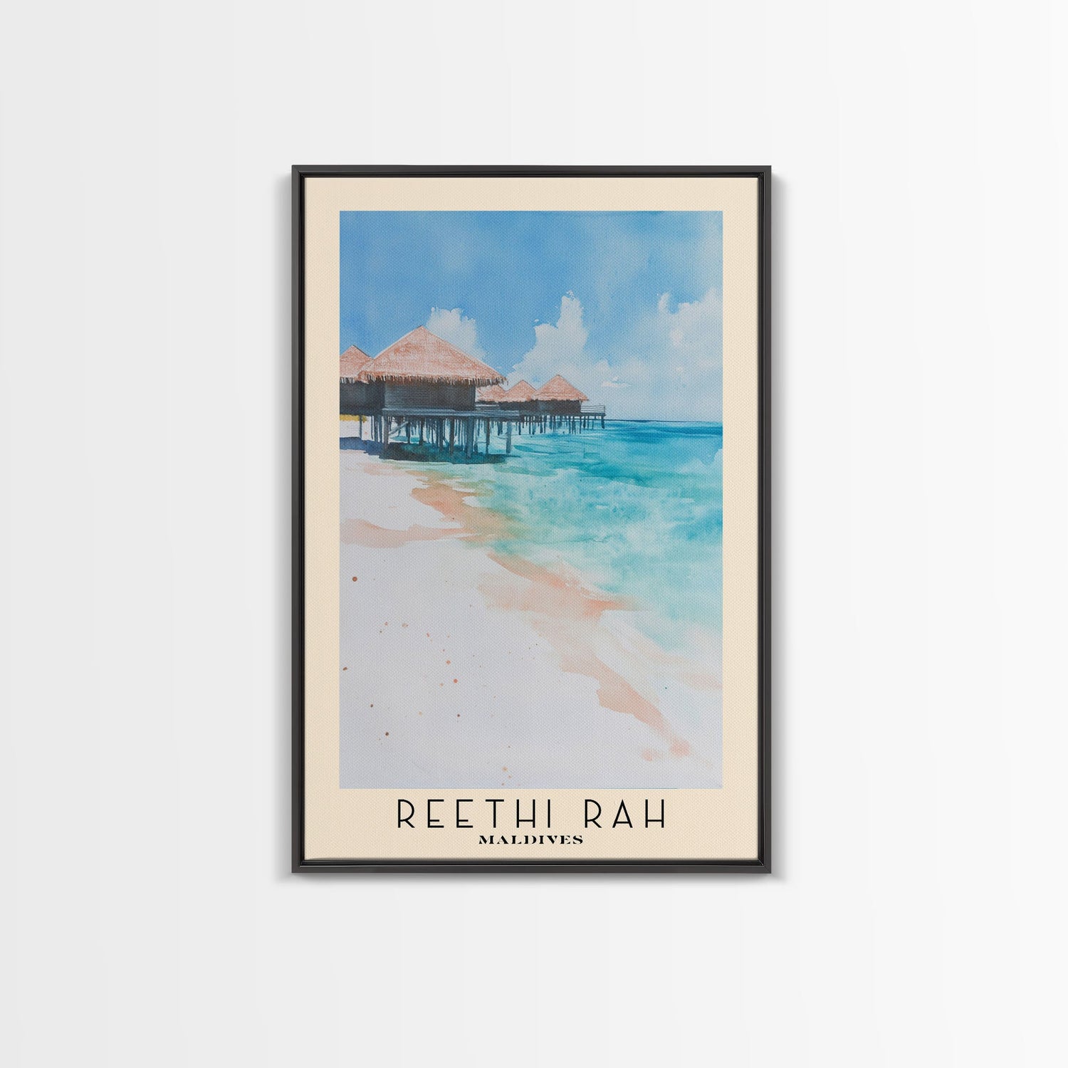 Reethi Rah, Maldives Watercolor Beach Print, Vacation Gift, Maldives Wall Art, Framed Canvas Print, Framed Beach Painting