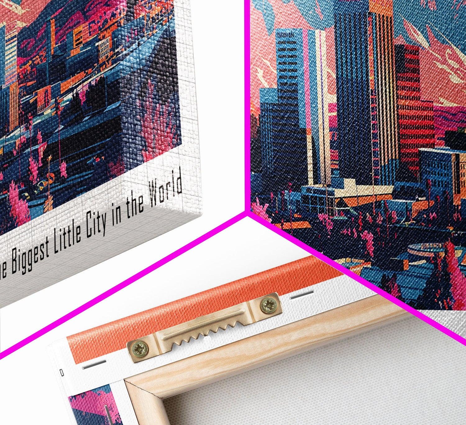 Reno Nevada Panoramic Painting, Mid Century Modern Framed Canvas Print, Retro Pop Art Travel Poster, City Art, Office Wall Decor, Living Room Art