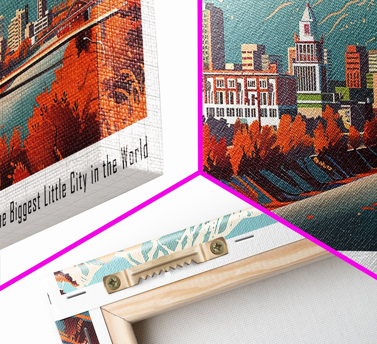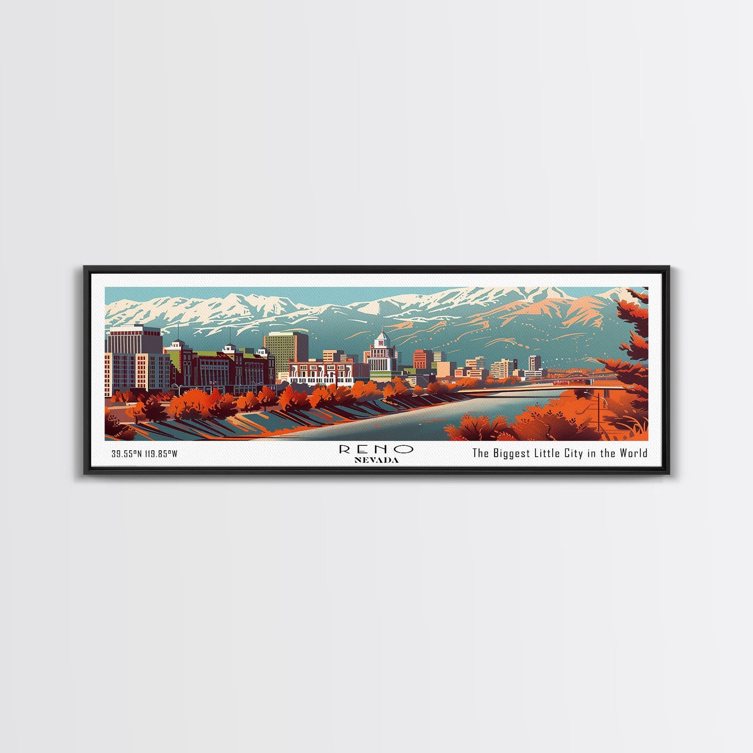 Reno Nevada Panoramic Painting, Mid Century Modern Framed Canvas Print, Retro Pop Art Travel Poster, Living Room Wall Decor