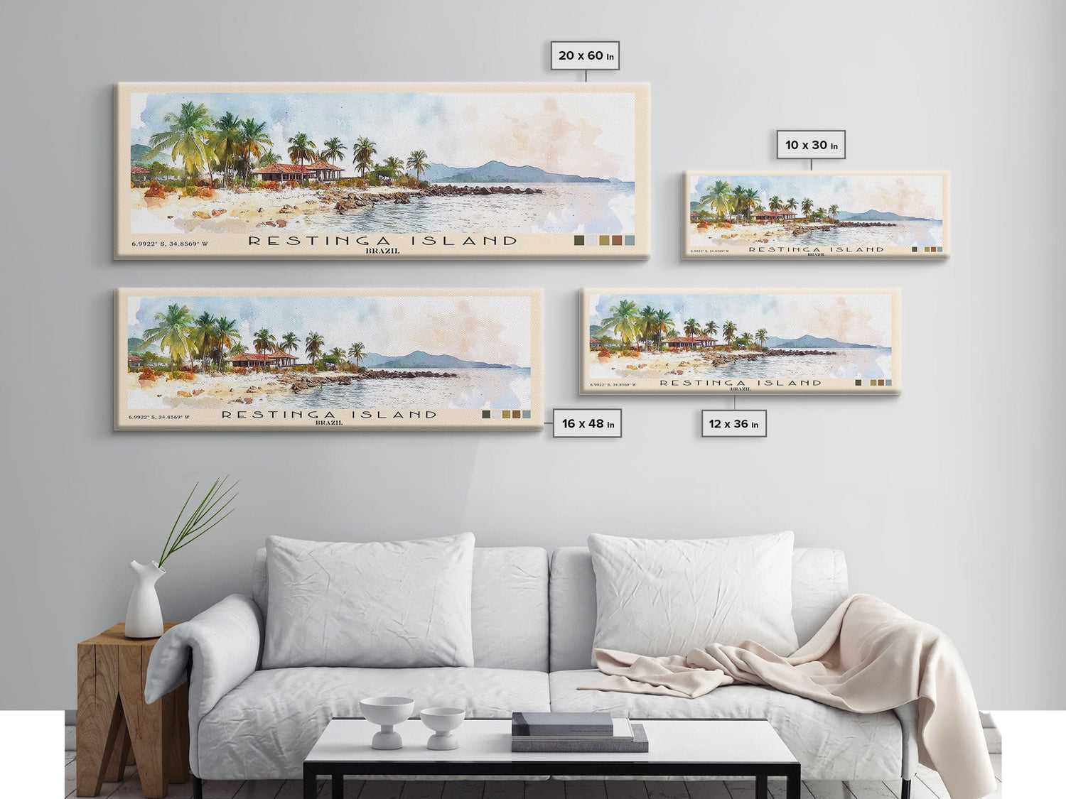 Restinga Island, Brazil Watercolor Print, Vacation Gift, Brazil Wall Art, Beach Painting, Beach Decor, Large Wall Art, Wood Frame Art - 10x30 Inches / No Frame - Stretched Canvas Only is backordered and will ship as soon as it is back in stock.