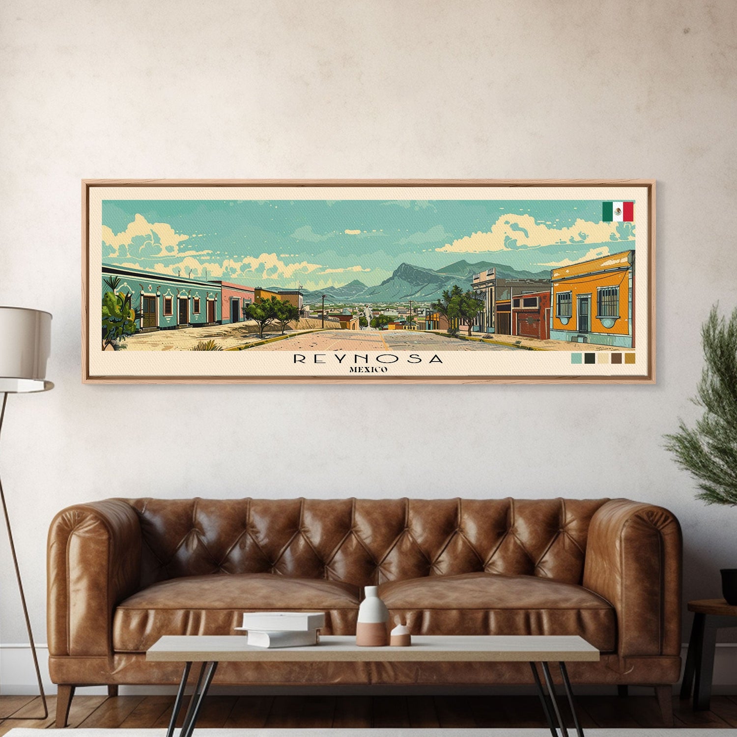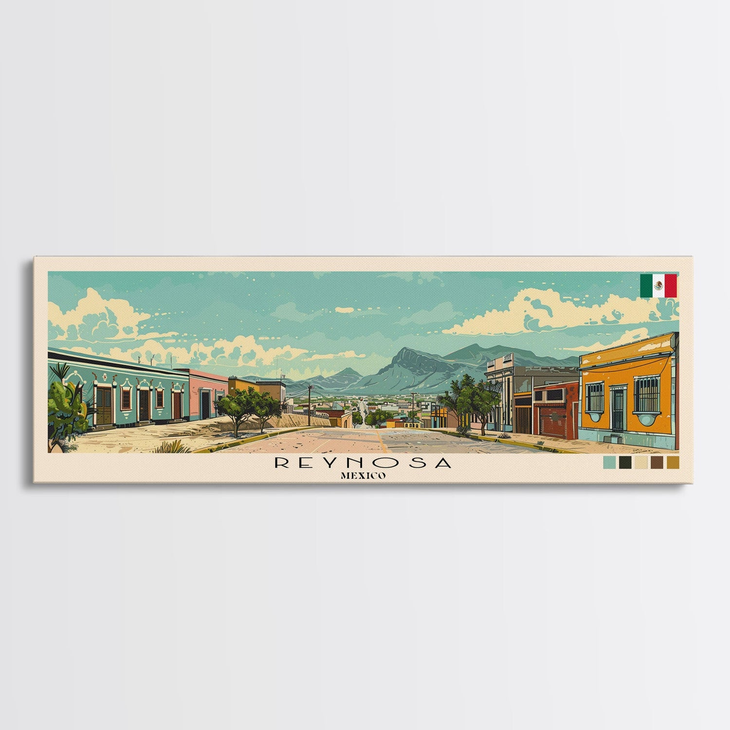 Reynosa, Mexico Panoramic Canvas Print, Reynosa, Mexico Painting, Mexico Art, Reynosa Travel Poster, Travel Art, Guest Room Painting