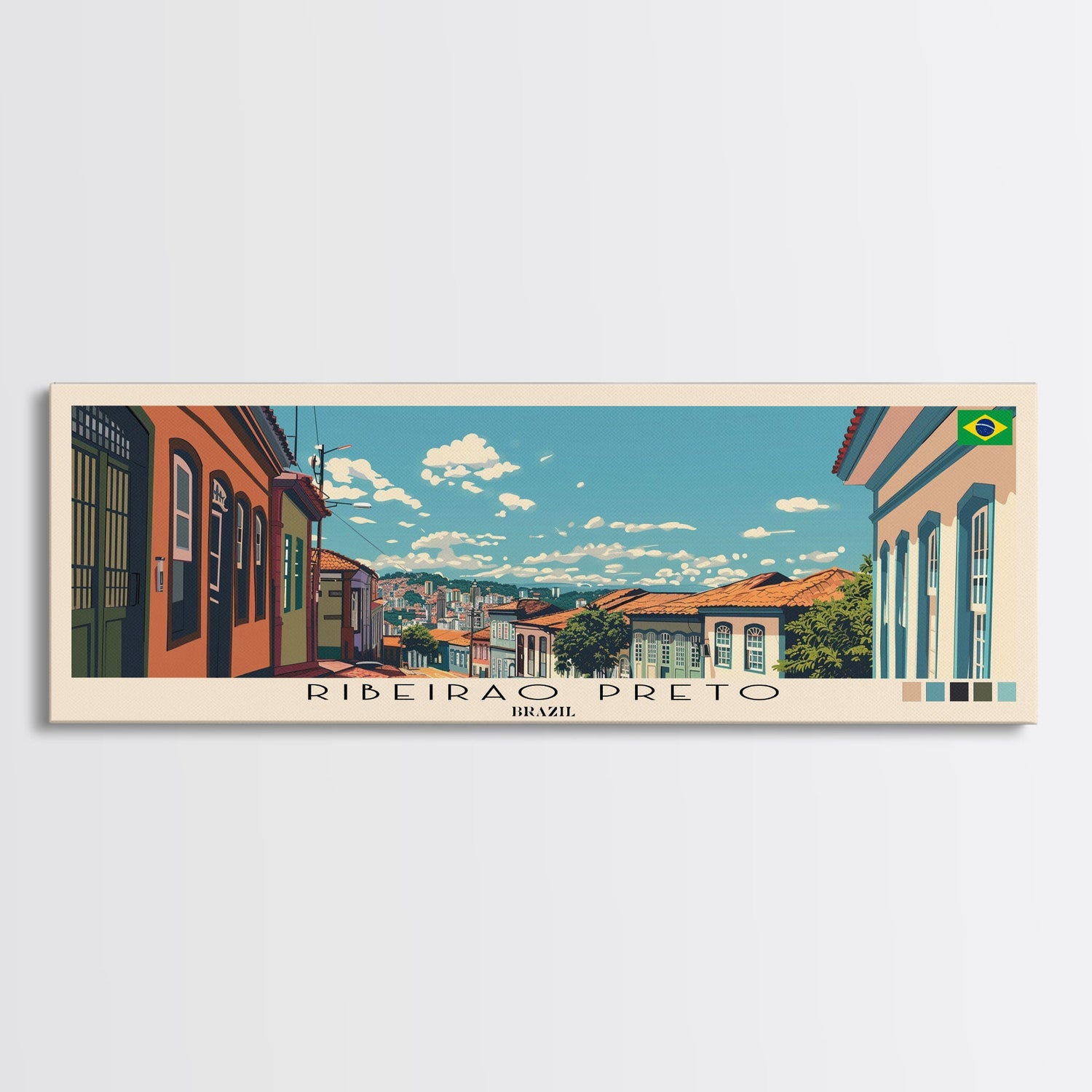 Ribeirao Preto, Brazil Panoramic Canvas Print, Ribeirao Preto, Brazil Painting, Brazil Art, Ribeirao Preto Travel Poster, Travel Art, Vacation Gift