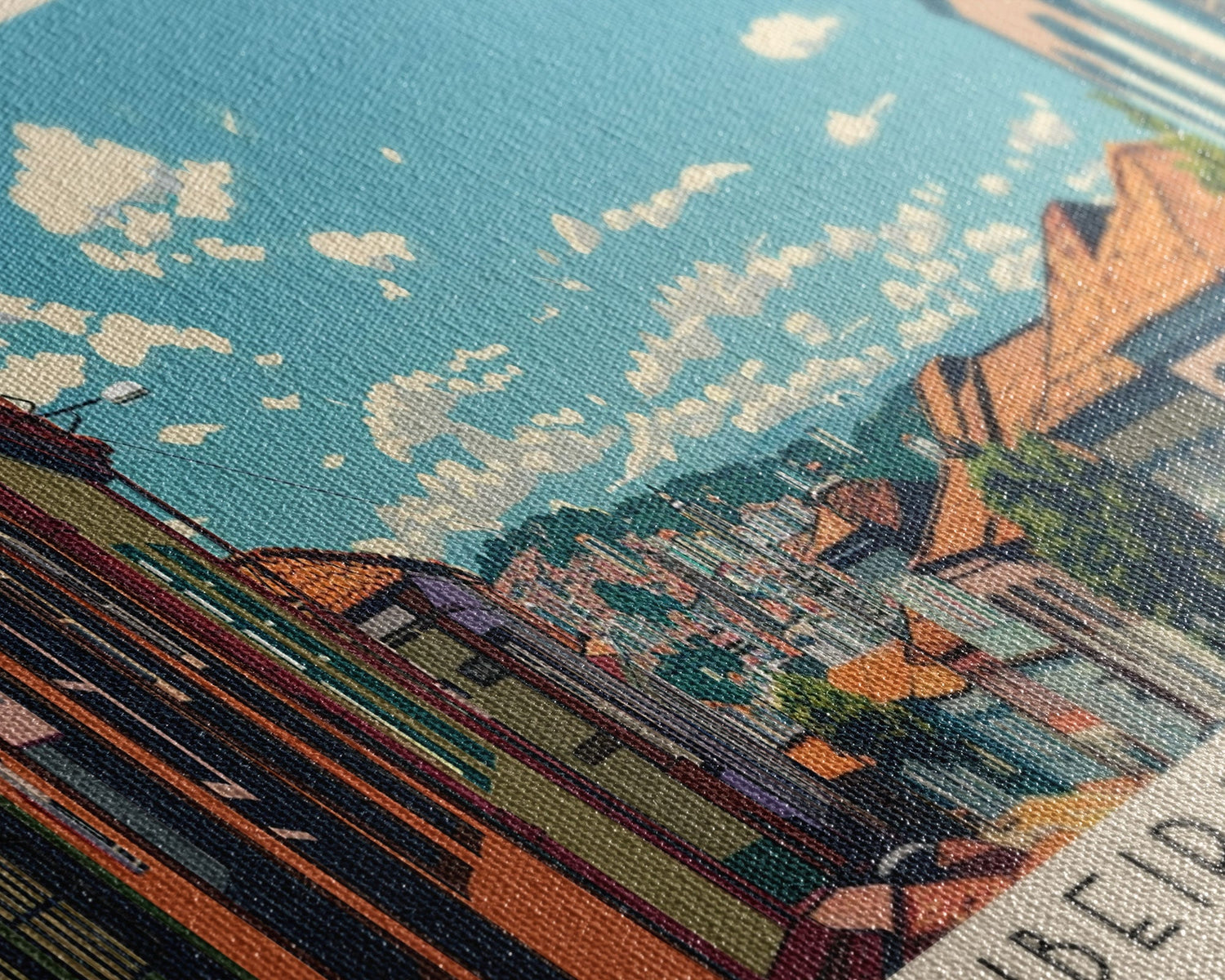 Most of our canvases are made in the USA, with the exception of canvases ordered with the light oak unstained frames, and any large canvases (24x48, 30x60, 16x48 and 20x60) ordered WITH a frame. These are temporarily made in and shipped from Europe, while we try to find a more consistent supplier in the USA.