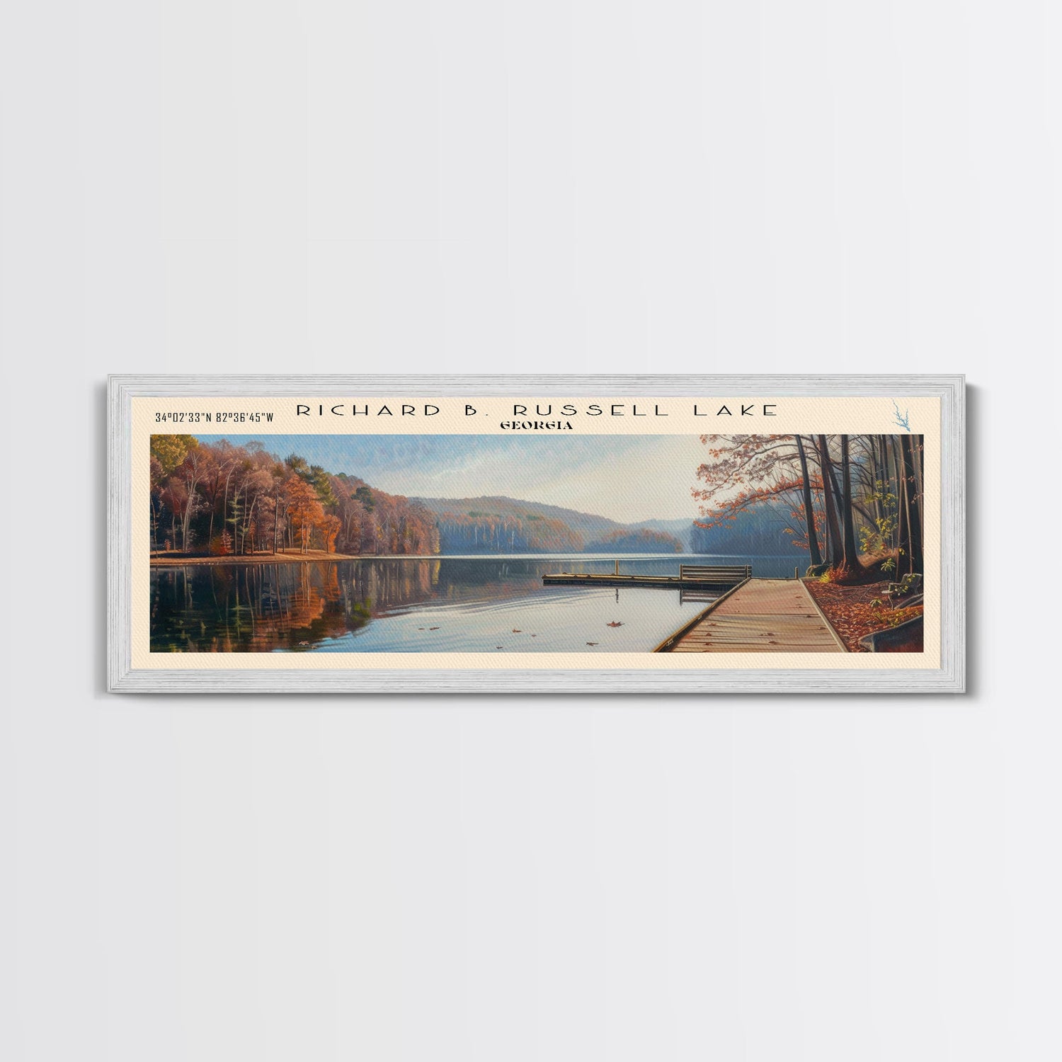 Richard B. Russell Lake Georgia Framed Canvas Print, Lake House Decor, Wall Art, Panoramic Travel Poster, Scenic Landscape Painting, Bedroom Decor