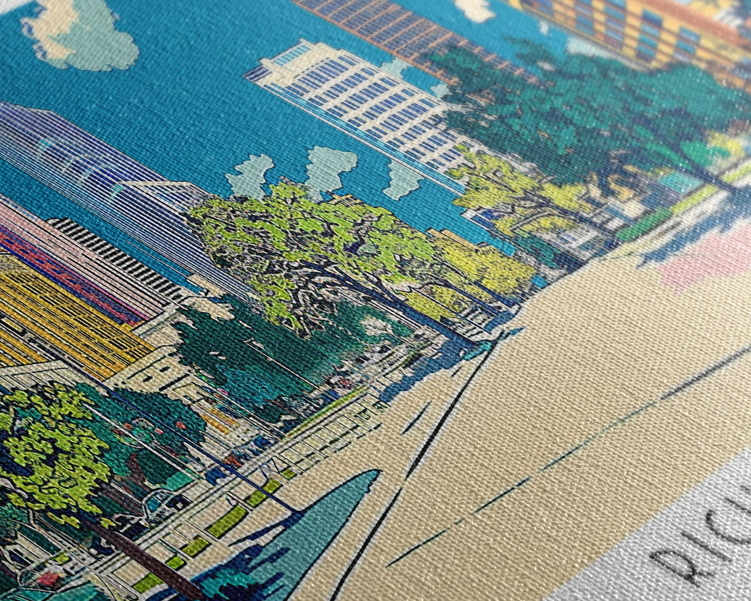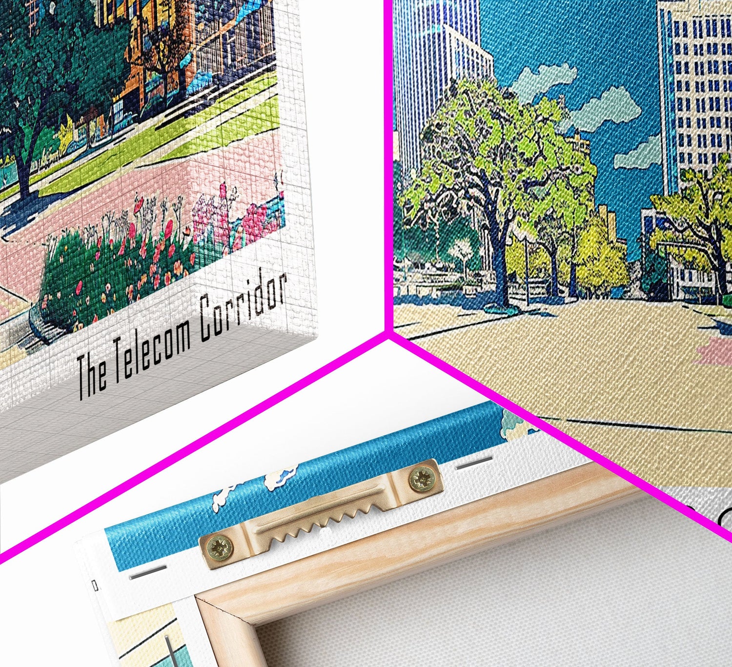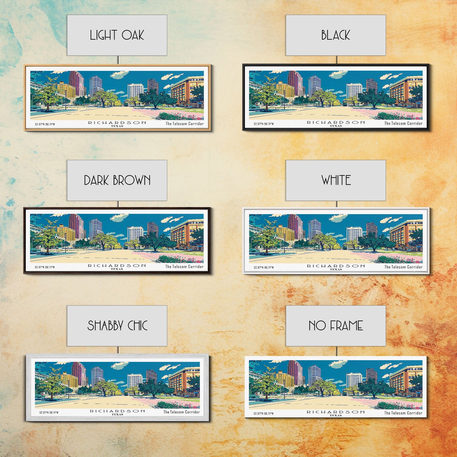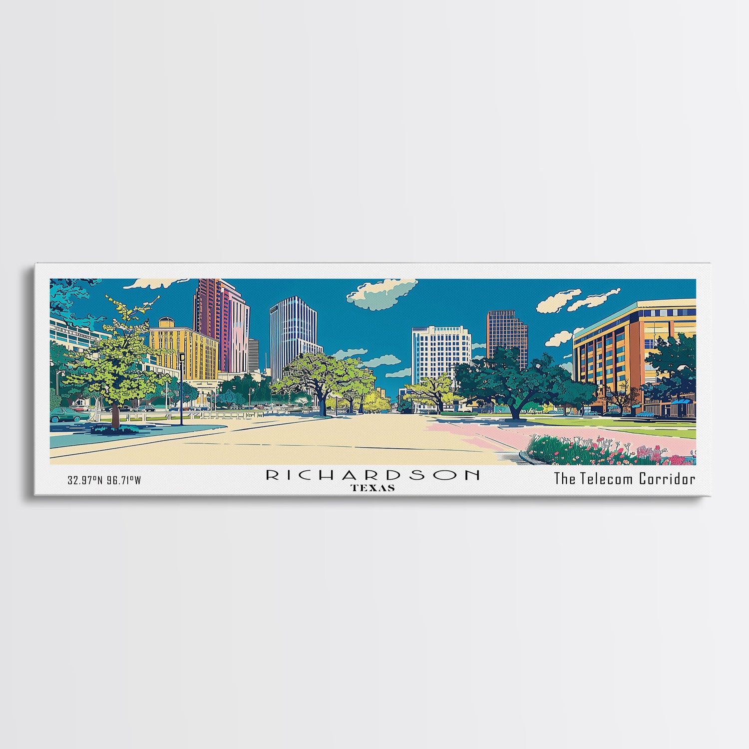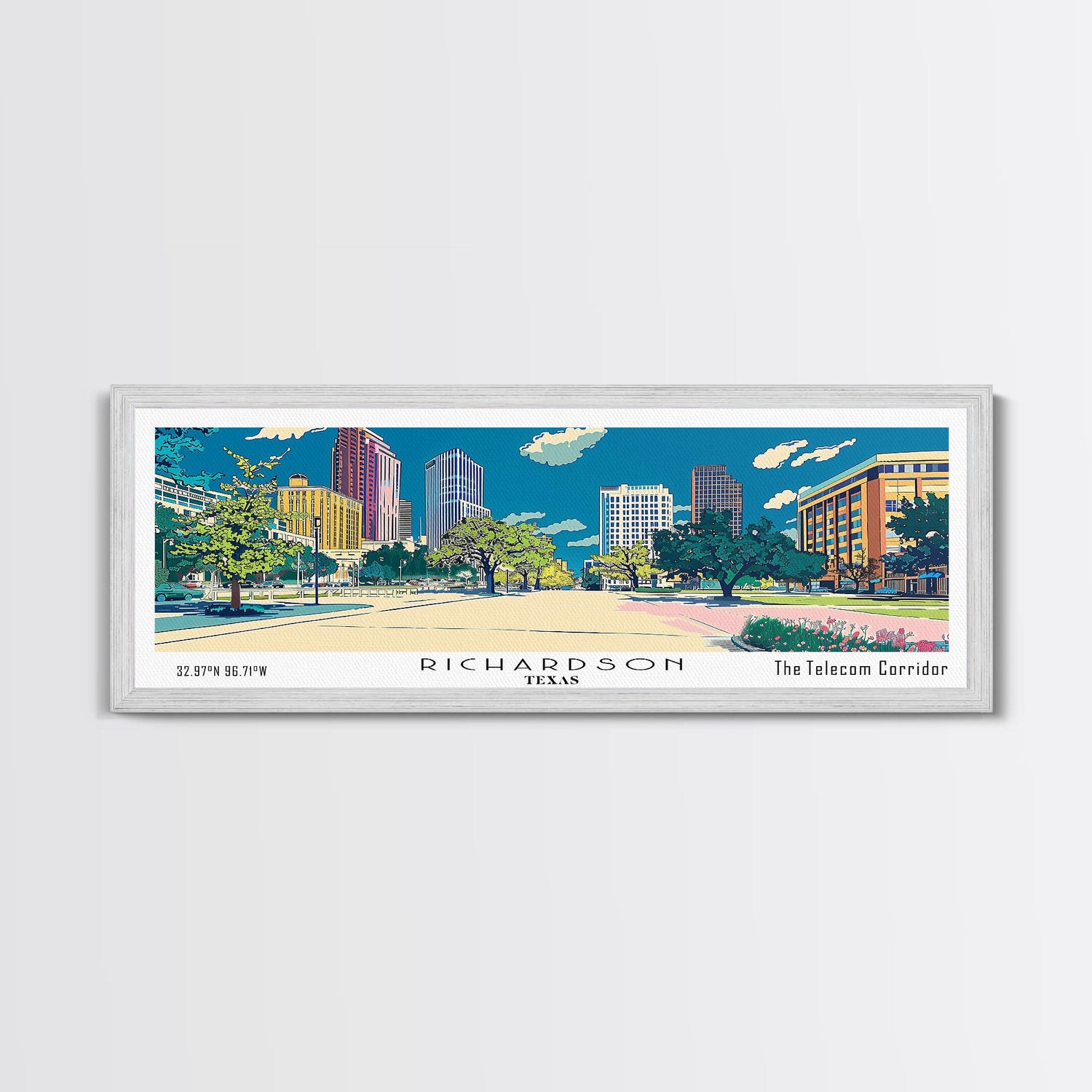 Richardson Texas Panoramic Wall Art, Mid Century Modern Framed Canvas Print, Retro Pop Art Travel Poster, City Art, Office Wall Decor, Living Room Art