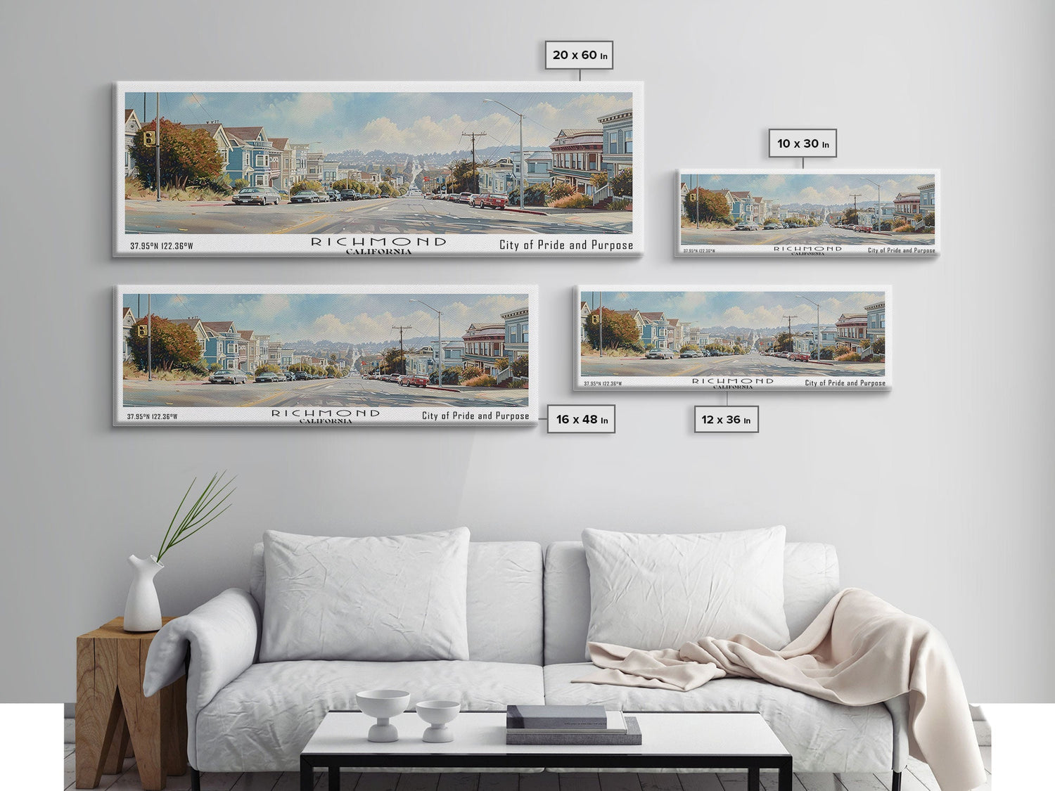 Richmond California Panoramic Print, Trendy Framed Canvas Print, Travel Poster Art, Home Decor, Wall Art, Gift Idea