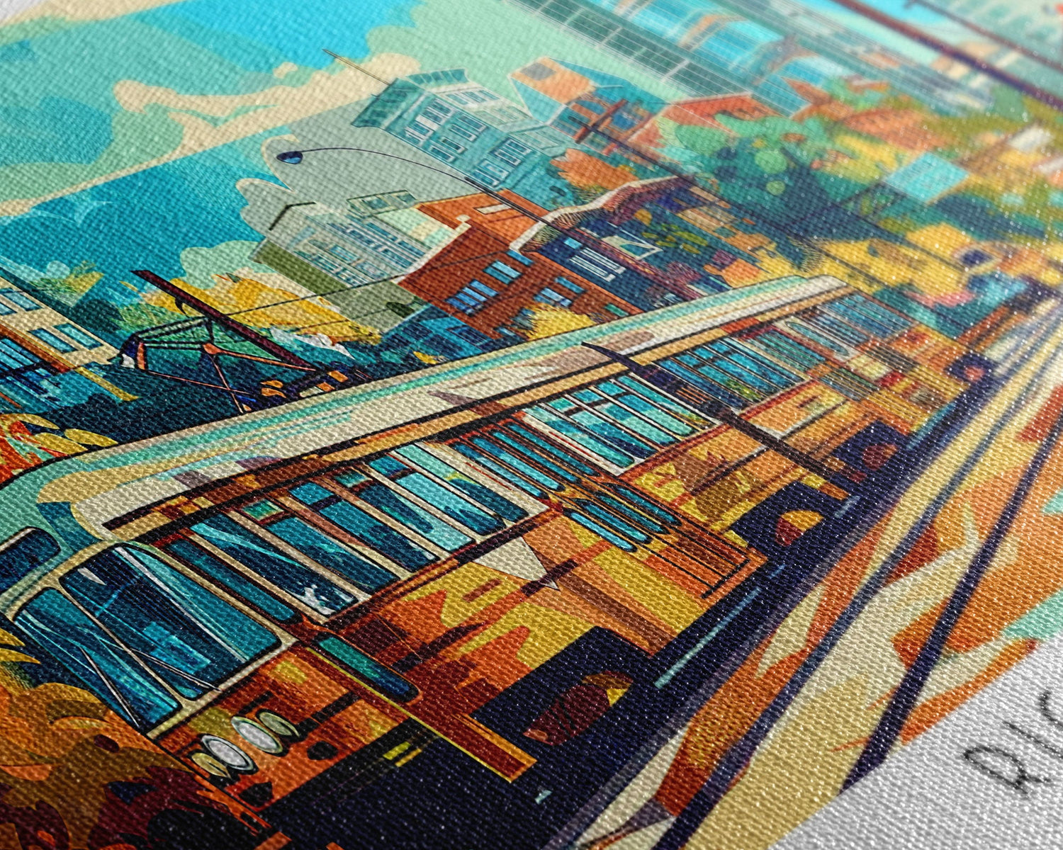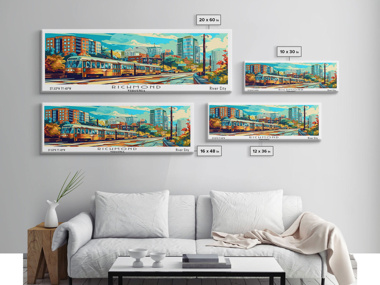 Richmond Virginia Panoramic Wall Art, Pop Art Framed Canvas Print, Mid Century Modern Home Decor, Retro Style Travel Poster