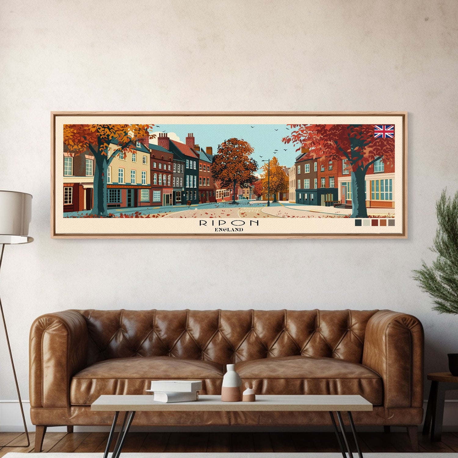 Ripon, England Panoramic Canvas Print, Ripon, England Painting, England Art, Ripon Travel Poster, Travel Art, Vacation Gift
