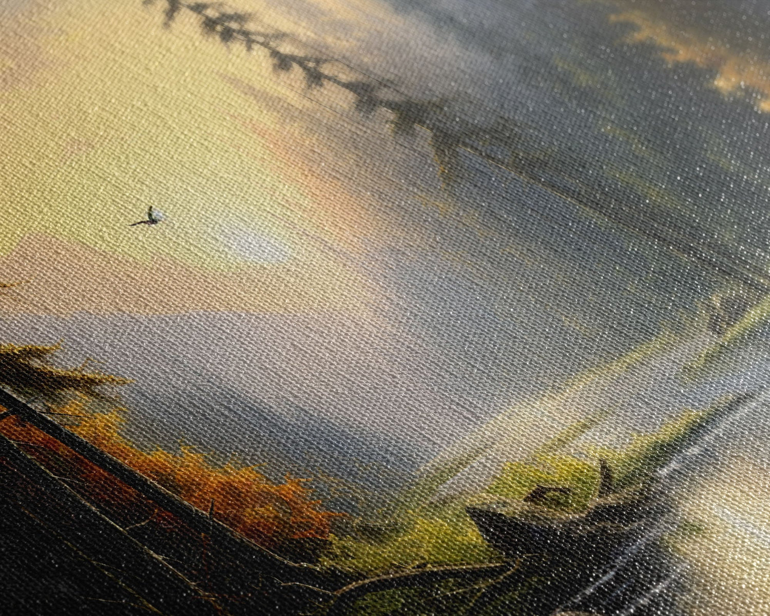 Most of our canvases are made in the USA, with the exception of canvases ordered with the light oak unstained frames, and any large canvases (24x48, 30x60, 16x48 and 20x60) ordered WITH a frame. These are temporarily made in and shipped from Europe, while we try to find a more consistent supplier in the USA.