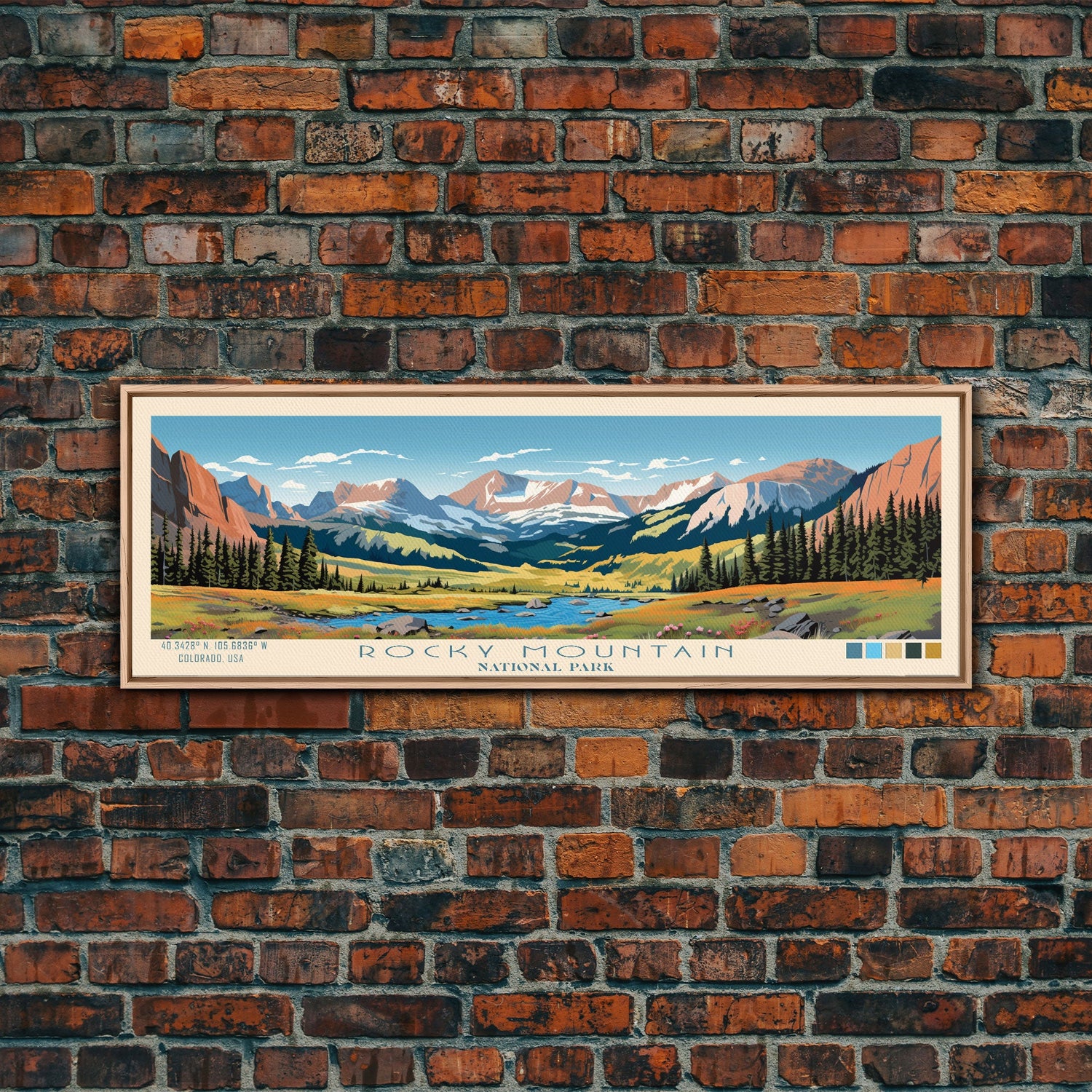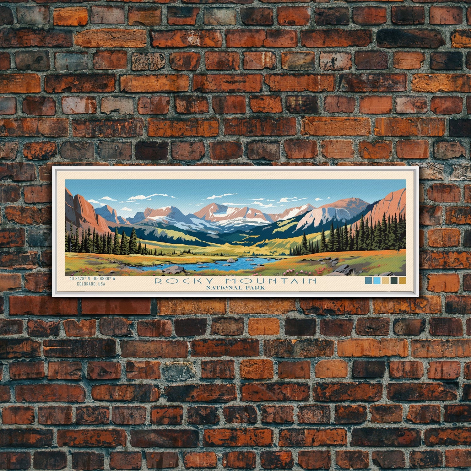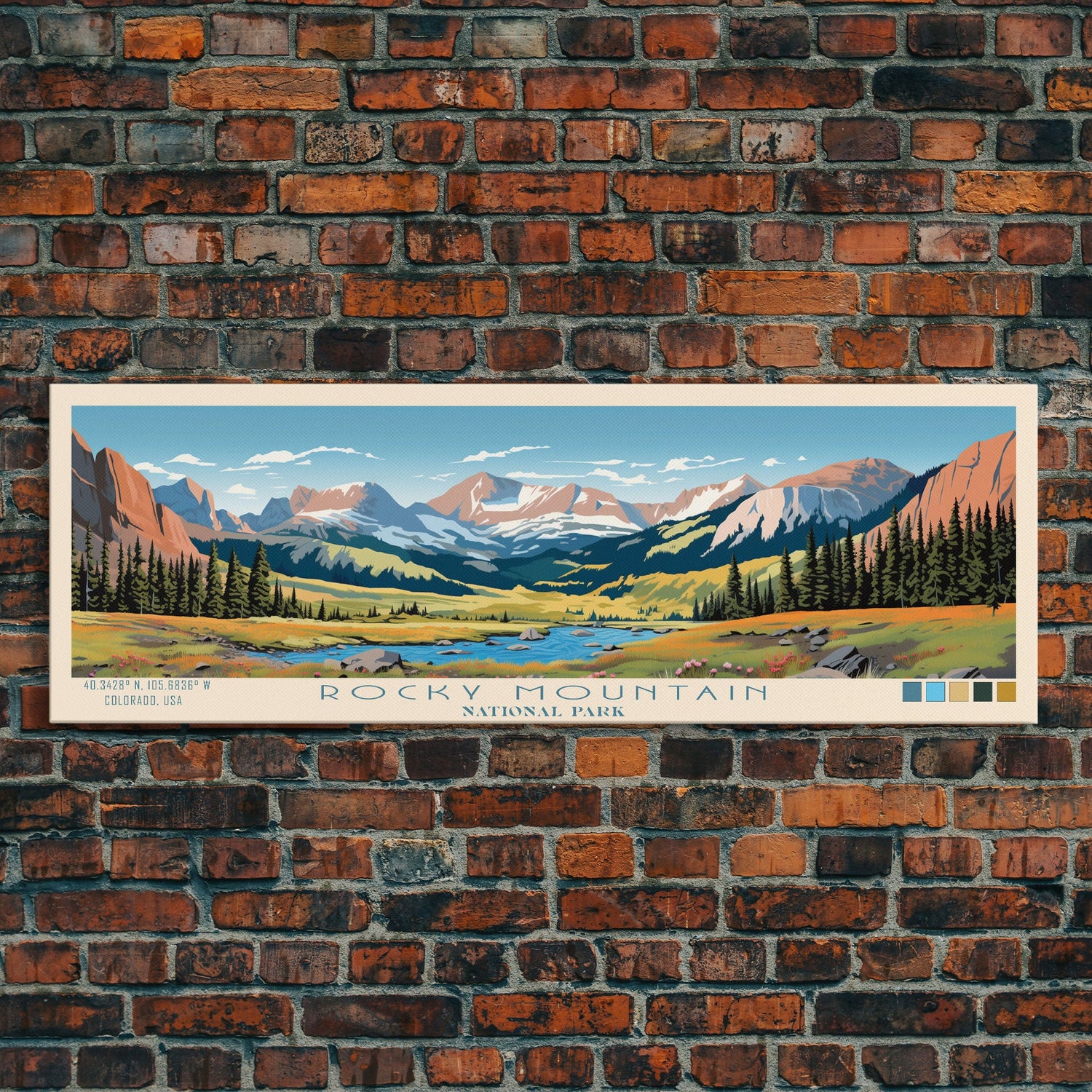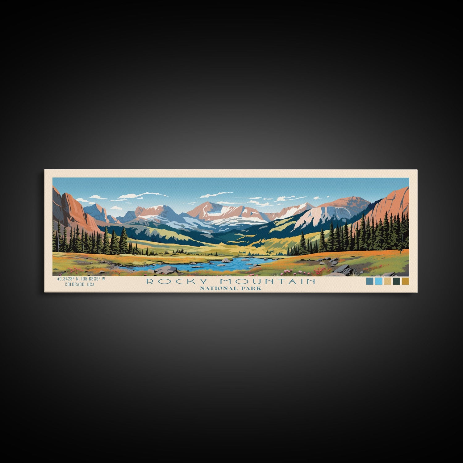Rocky Mountain National Park Panoramic Colorado Travel Art, National Park Print, Minimalist Travel Art, Midcentury Modern Style Landscape