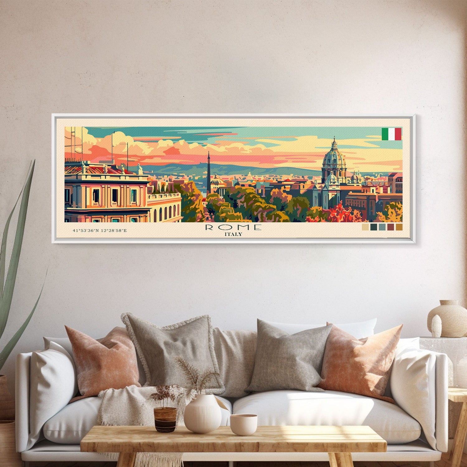 Rome Italy Travel Print Wall Art, Panoramic City Art, Travel Art, Wall Decor, Vacation Gift, Framed Canvas Print Or Metal Art