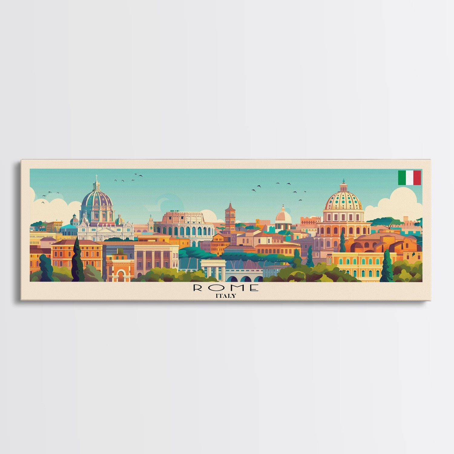 Rome Italy Travel Print Wall Art, Panoramic City Art, Travel Art, Wall Decor, Vacation Gift, Framed Canvas Print Or Metal Art