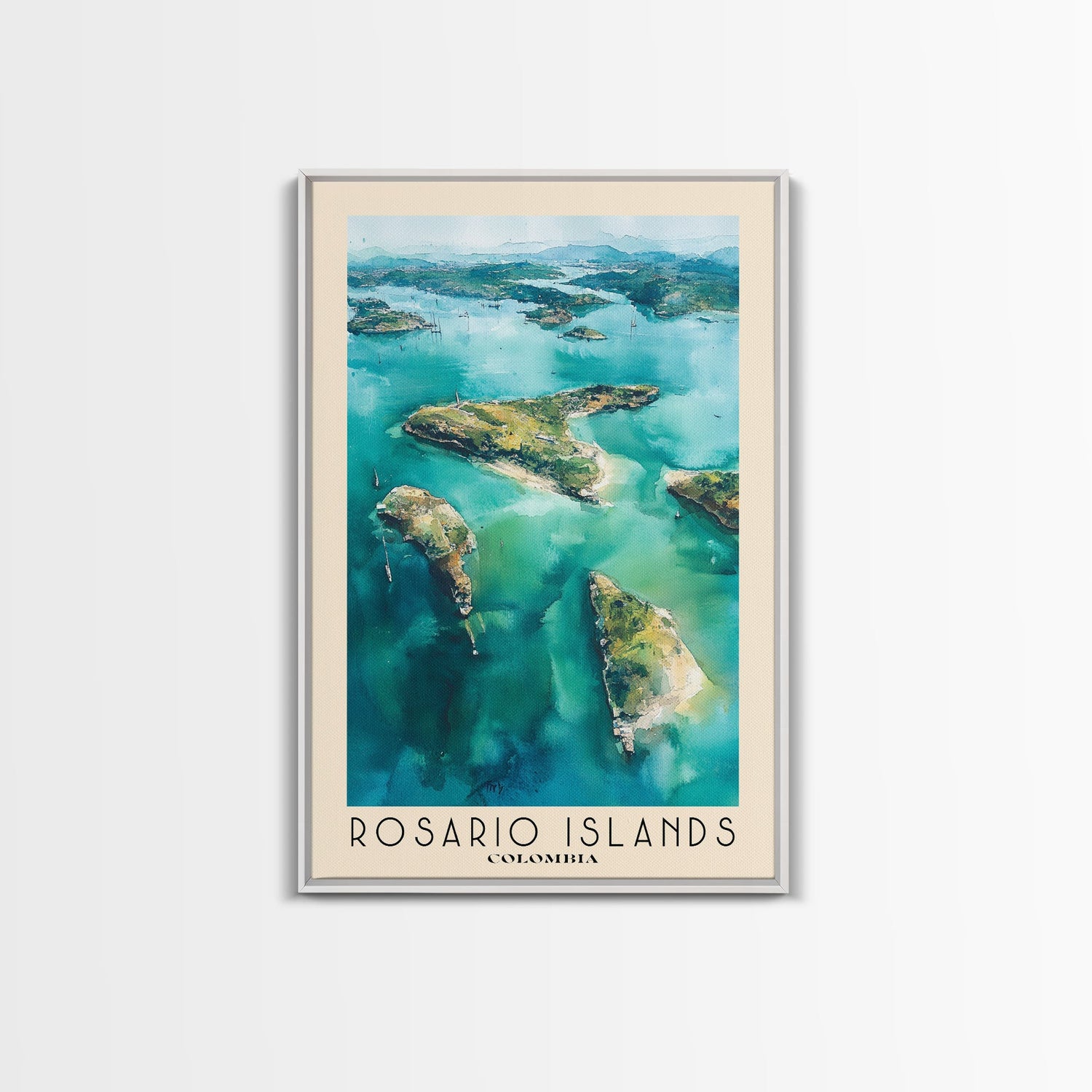 Rosario Islands, Colombia Watercolor Beach Print, Vacation Gift, Colombia Wall Art, Beach Painting, Beach Decor, Beach Painting - 8x12 Inches / No Frame - Stretched Canvas Only is backordered and will ship as soon as it is back in stock.