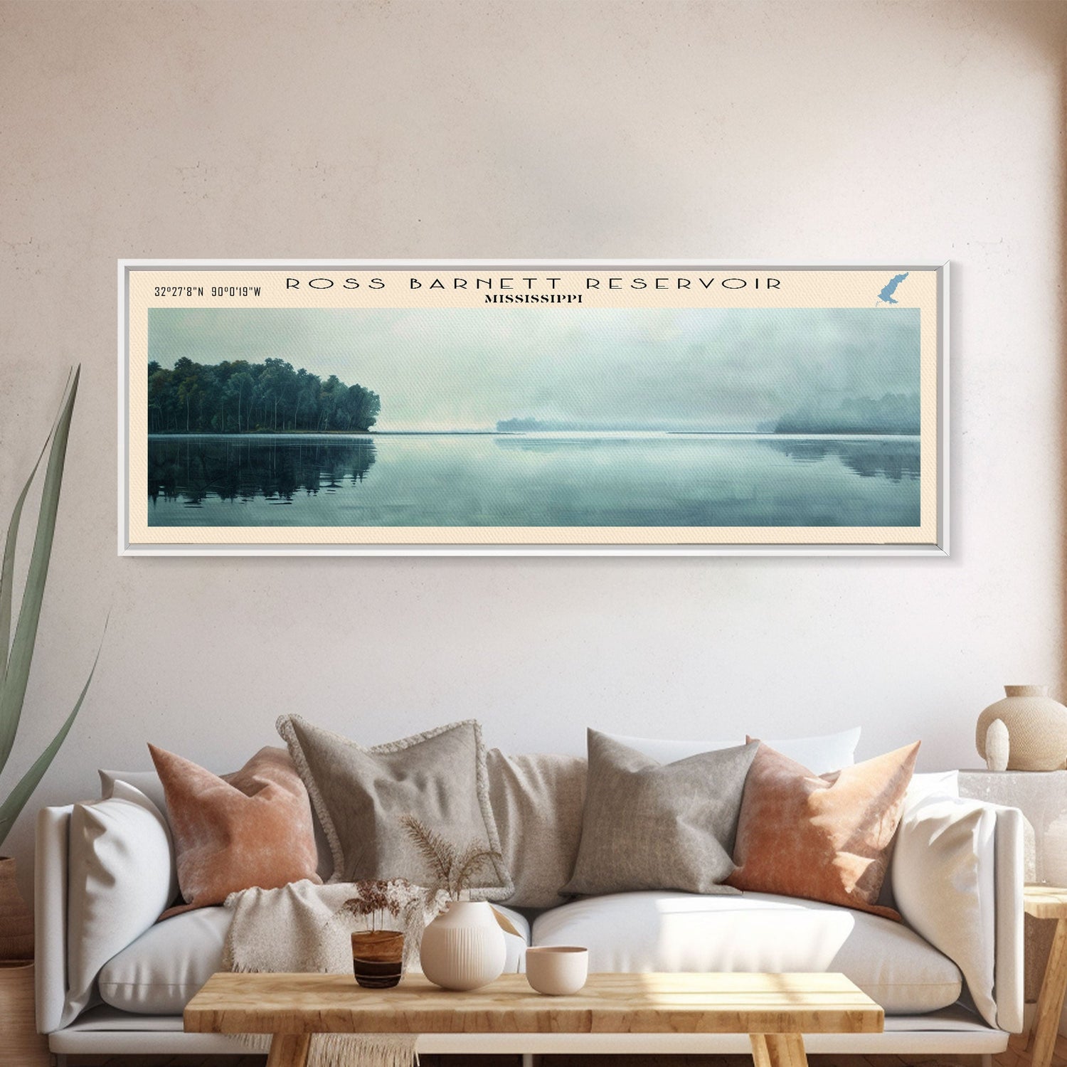 Ross Barnett Reservoir Mississippi Framed Canvas Print, Lake House Decor, Panoramic Wall Art, Travel Poster, Scenic Landscape Painting, Home Decor