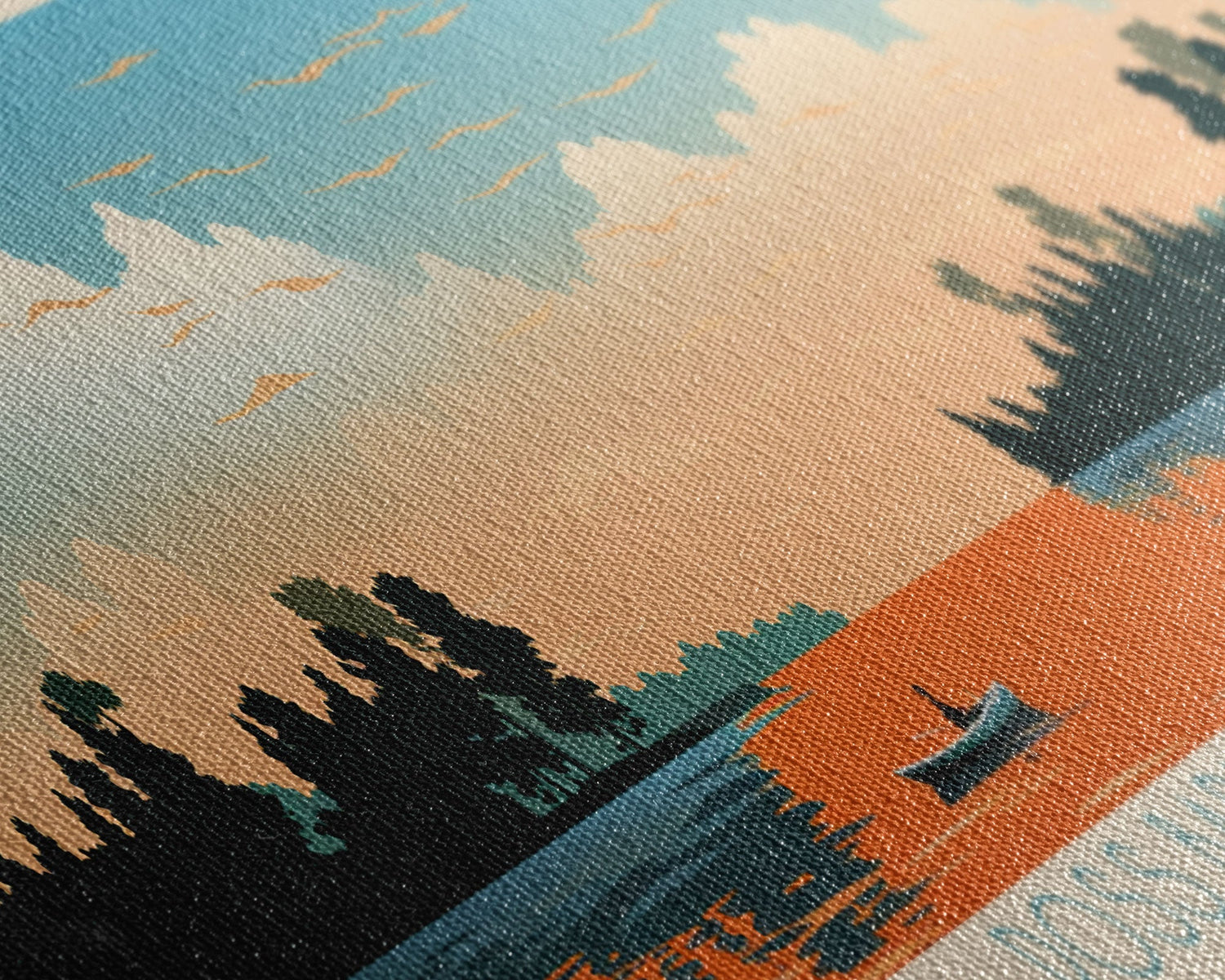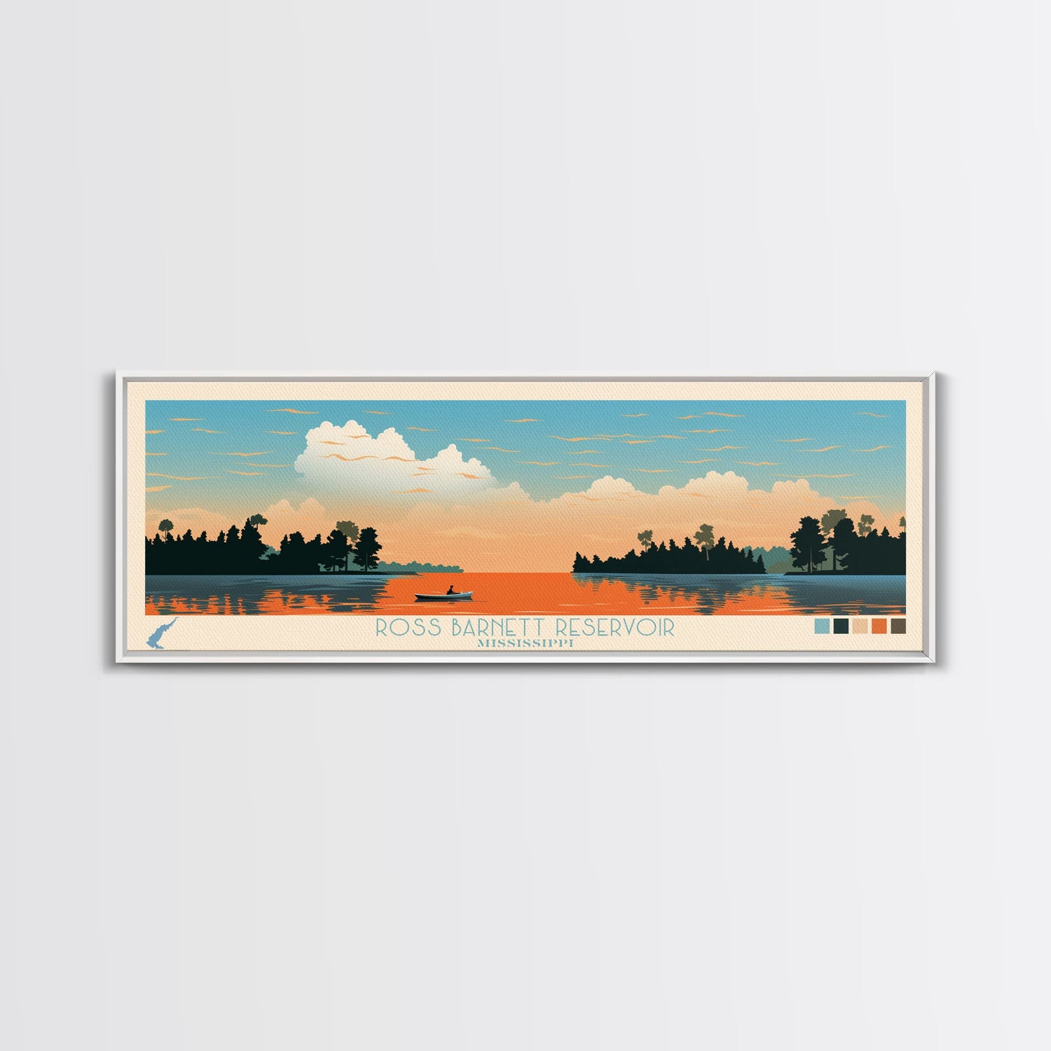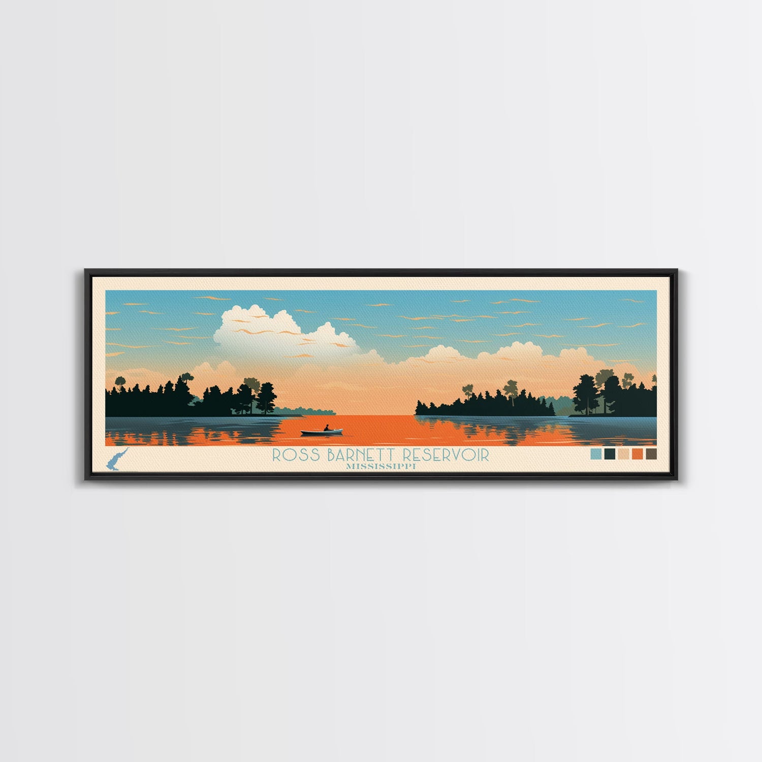 Ross Barnett Reservoir, Mississippi Framed Canvas Print, Panoramic Wall Art, Midcentury Modern Decor, Living Room Art, Pop Art, Travel Poster